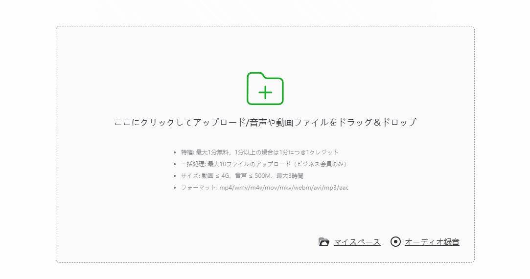 新機能の利用は極めて簡単です。RecCloudサイトの文字起こしのウェブページを開き、またはRecCloudアプリからAI文字起こしをタップし、動画や音声ファイルをアップロードすればしばらく待てばAIにより音声を認識し、テキスト化で出力してくれます。