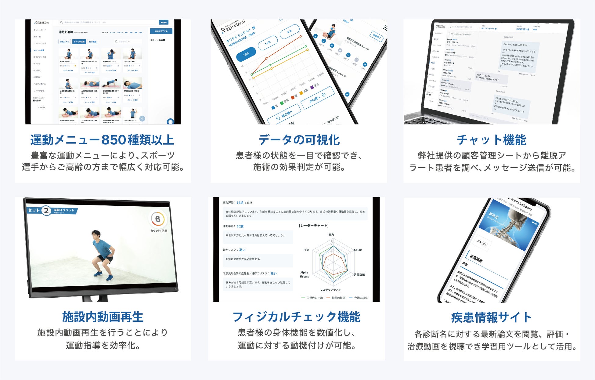 ・経験が少ない医療従事者でも運動指導に困らないようにサポートする機能を搭載