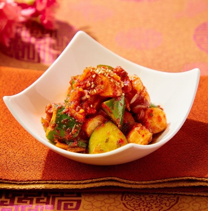 韓国定番のおつまみ。食感もおいしい水ダコときゅうりのキムチ風でビールのお供に、焼肉の前菜にぴったりな逸品です。