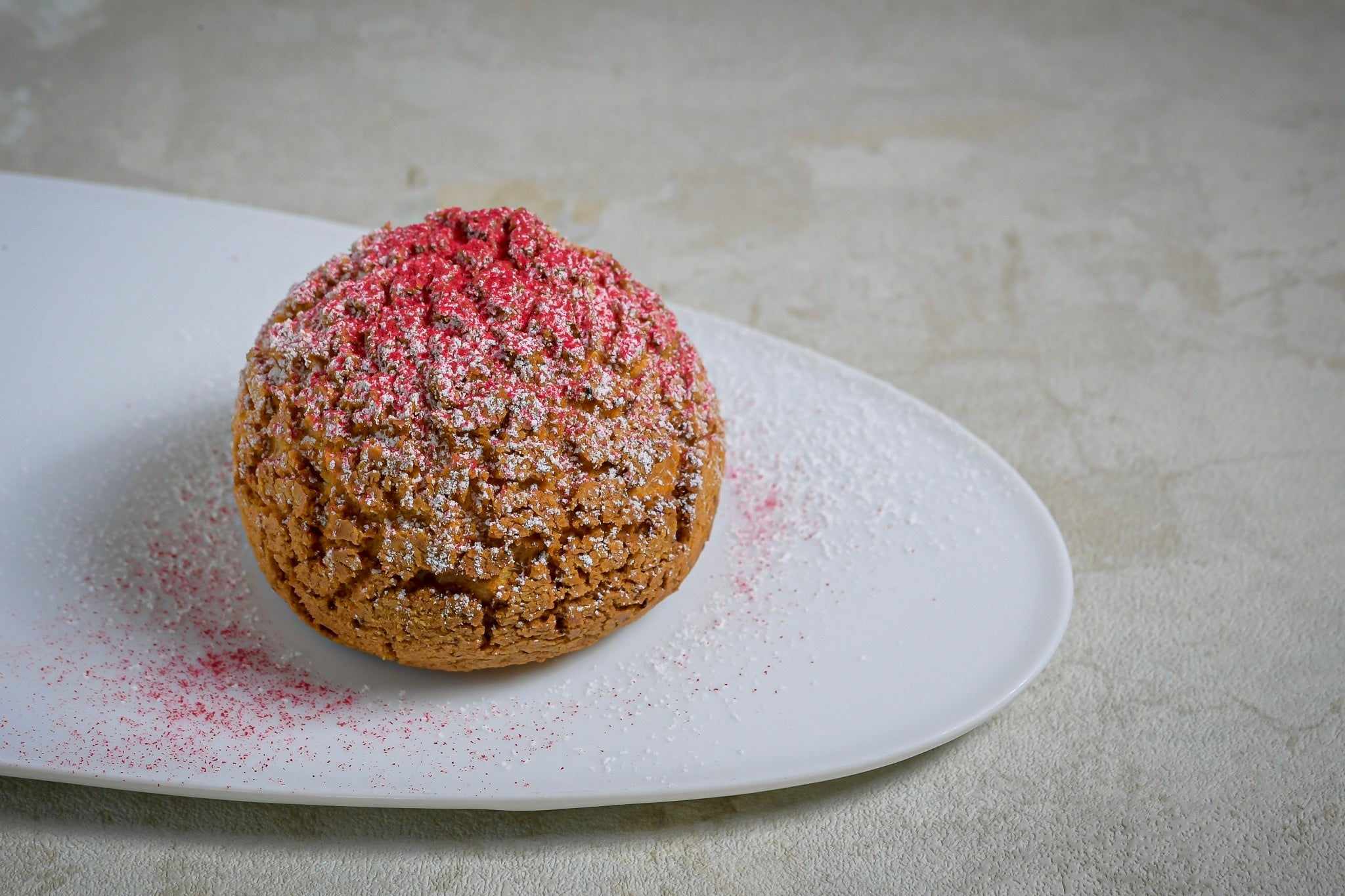 パティスリーレセンシエルのスペシャリテである“香り”が主役の『トンカ豆のシュー・ア・ラ・クレーム』。たっぷりと詰め込まれたカスタードクリームには、バニラビーンズではなく、トンカ豆を使用しています。シュー生地の表面は、サクッとした食感が特徴のクッキータイプ。そこから中に進むほど、生地はしっとりと変化。クリームにたどりつくと、『トンカ豆』がもつ“桜餅”や“杏仁豆腐”を彷彿とさせる芳醇な香りが、鼻の中を駆け抜けていきます。その美味しさやクリームたっぷりのビジュアルもあって、SNSでは24,000を超える「いいね」がついて話題となりました。今回はそんなシュークリームに、香りの女王『バラ』のジャムをふんだんに盛り込みました。粉糖、フランボワーズパウダー、バラジャム、トンカのカスタードクリームのマリアージュをお楽しみください。