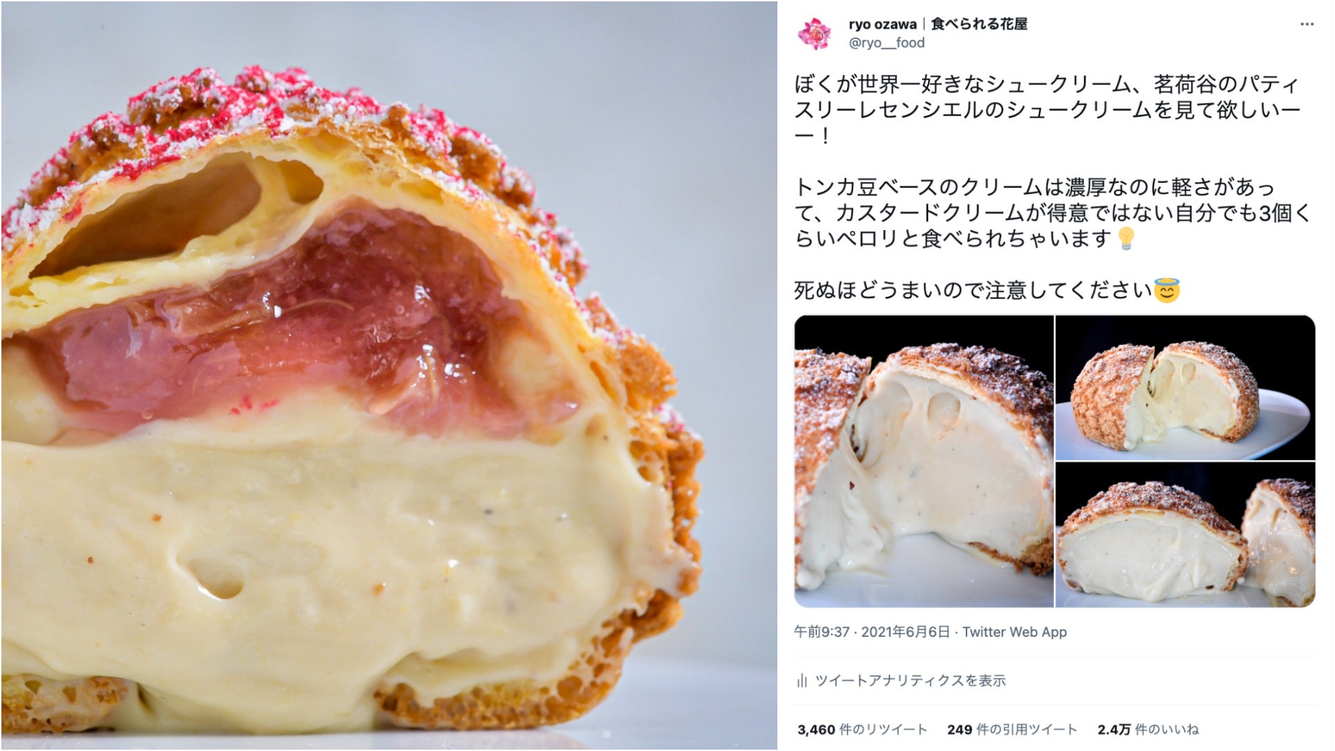 香り高い最高級の国産バラジャムがたっぷり入った『バラのシュークリーム』パティスリーレセンシエル(茗荷谷)にて6/17(金)6/18(土)6/19(日)の3日間で限定販売