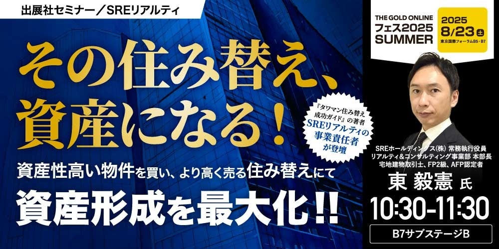 『その住み替え、資産になる!“資産性高い物件を買い、より高く売る”住み替えにて資産形成を最大化!!』8/23(土) 会場限定セミナーのお知らせ|THE GOLD ONLINE フェス 2025