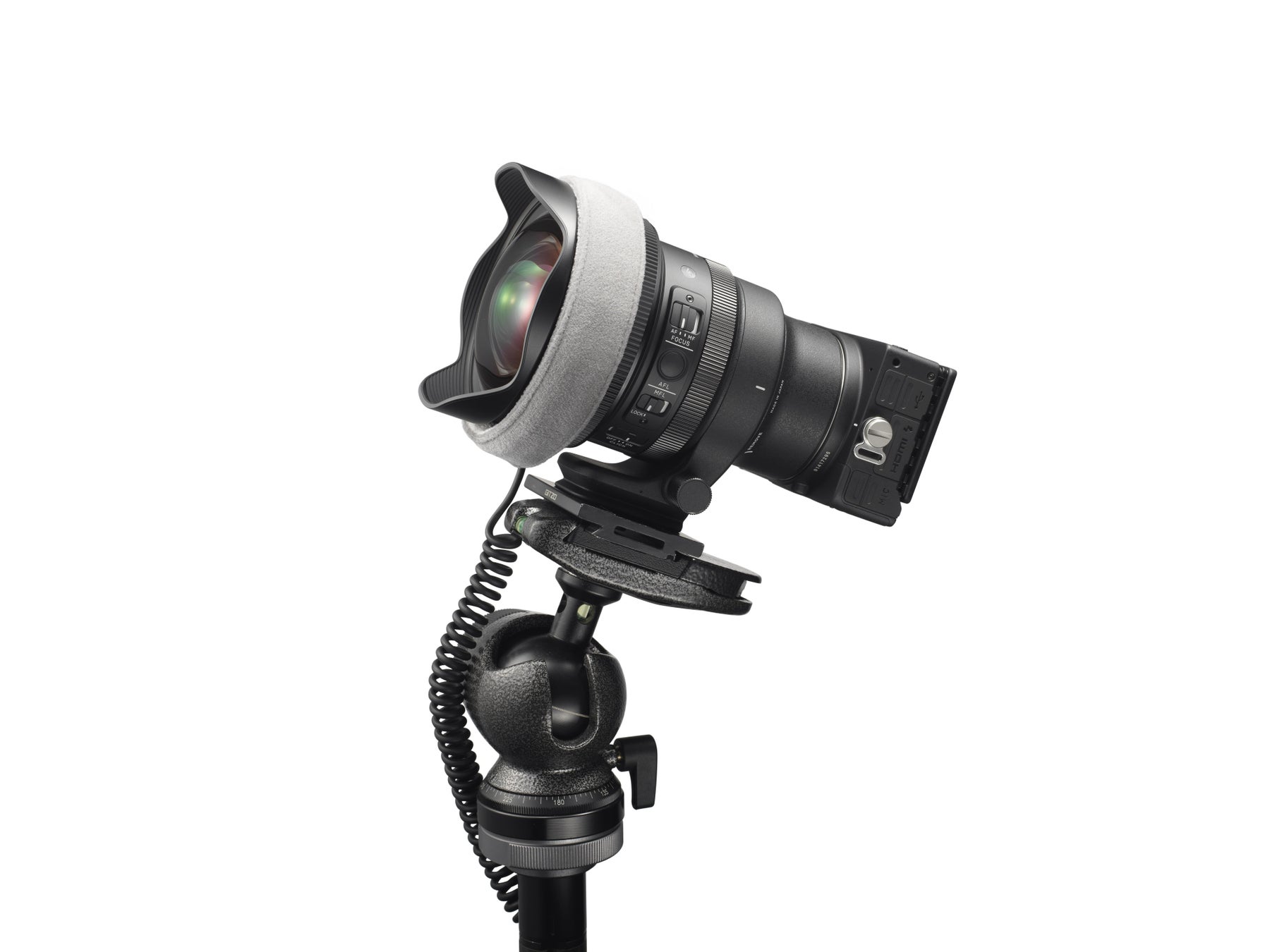 アルカスイスタイプ対応の着脱式三脚座を付属。フロント側に重みのある14mm F1.4 DG DN | Artを、より安定した状態で三脚に取り付けることができます。レンズヒーター使用時も干渉しないよう、形状に配慮しています。