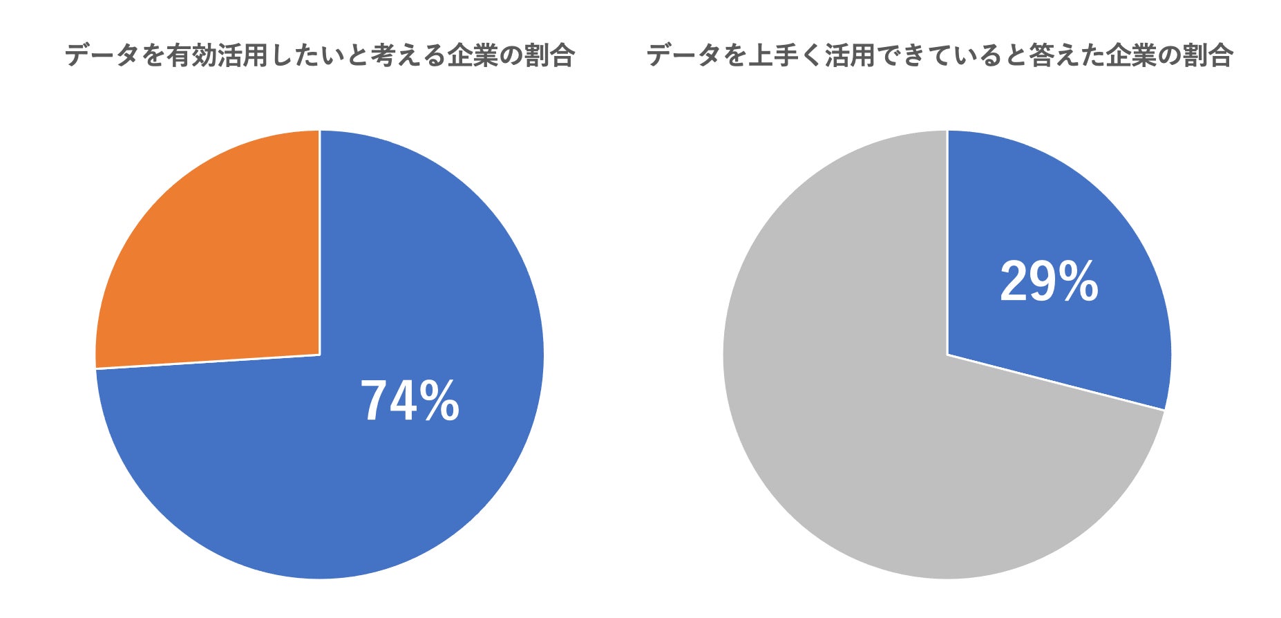フォレスター・リサーチ社の調査では、回答企業の間でビッグデータへの投資が増加しているにもかかわらず、分析に関する満足度が 21%低下したという結果が出ました。さらに、74%の企業が社内でデータの活用を推進したいと回答した一方で、データを上手く活用できていると答えた企業は 29%に過ぎませんでした(※)。
