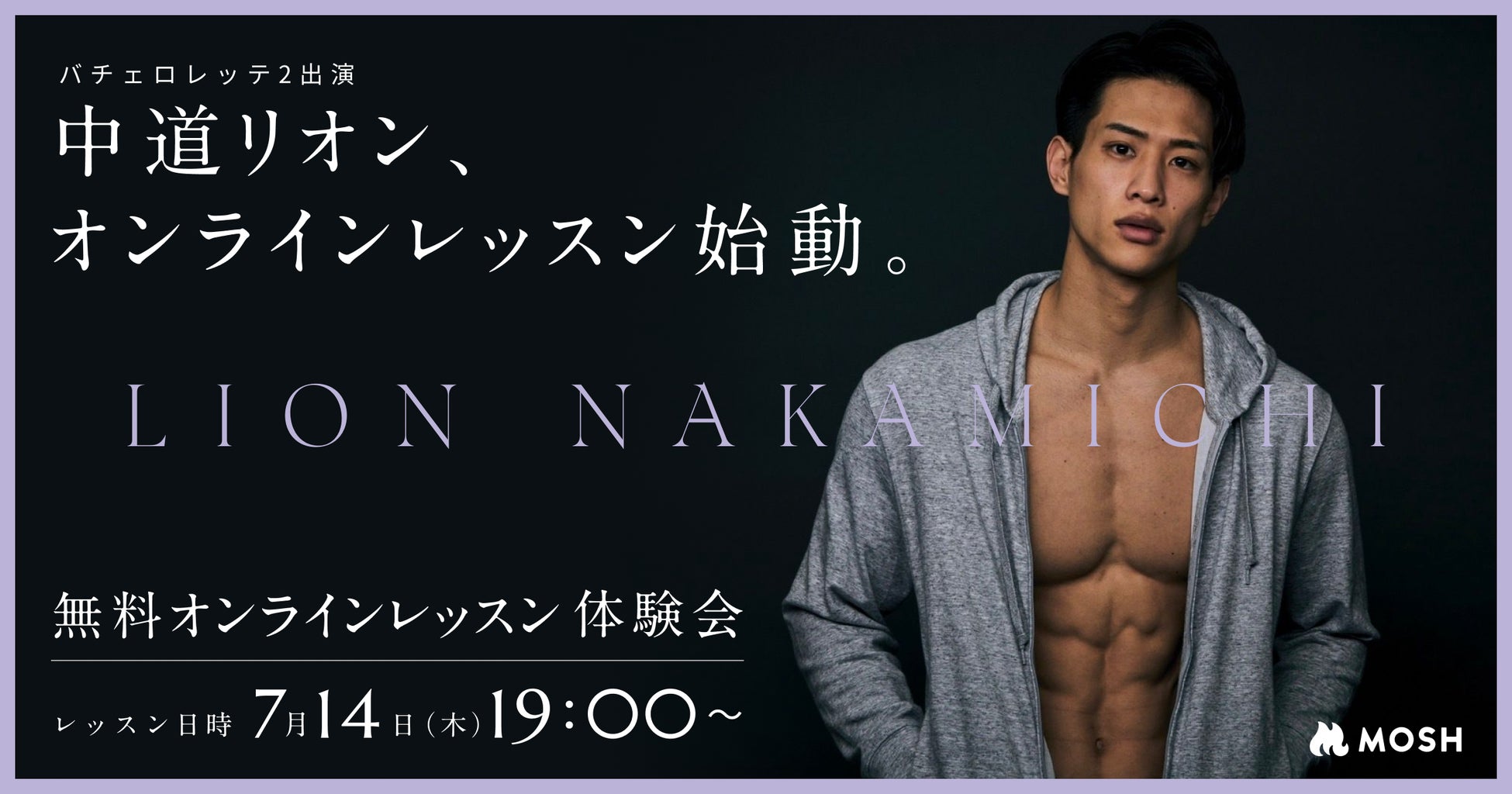 話題の婚活リアリティ番組に出演中!フィットネスモデル中道リオン氏による、オンライン無料体験レッスンが「MOSH」にて開催決定!7/8(金)より申込み開始。