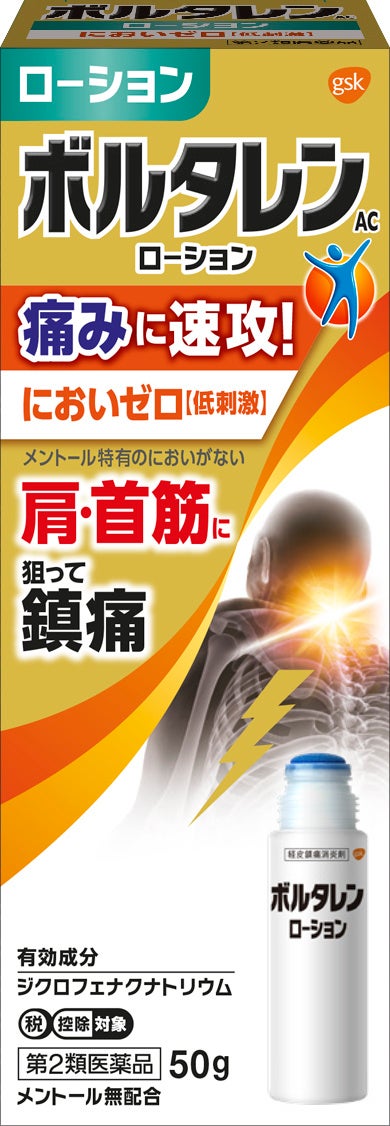 有効成分ジクロフェナクナトリウムを配合した外用鎮痛消炎剤の「ボルタレン」は、有効成分がすばやく患部に浸透し、炎症を鎮め、痛みを和らげる効果があります。l-メントール配合により清涼感を増した「クールタイプ」と、メントール無配合でにおいゼロ*2の「無香料タイプ」の2タイプから選ぶことができる、ボルタレンならではのラインナップです。