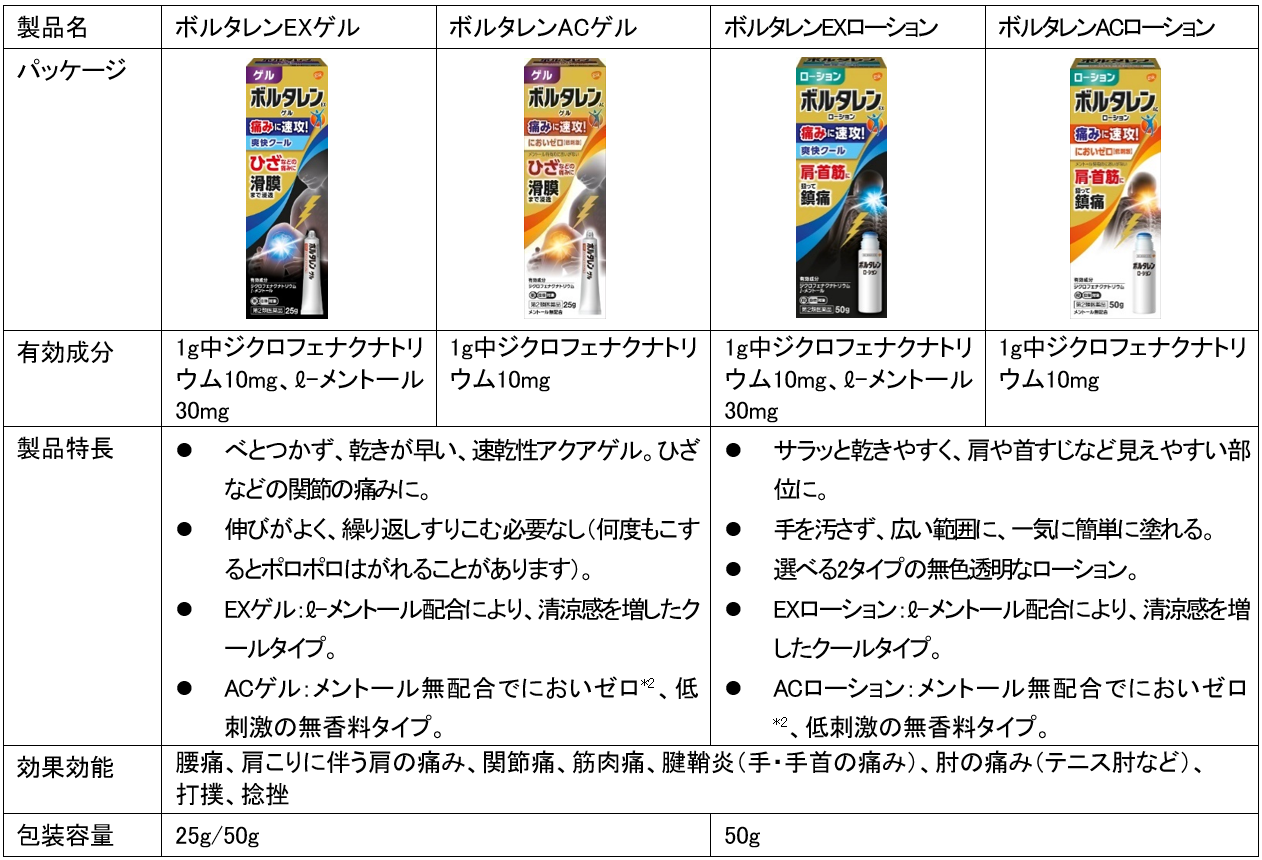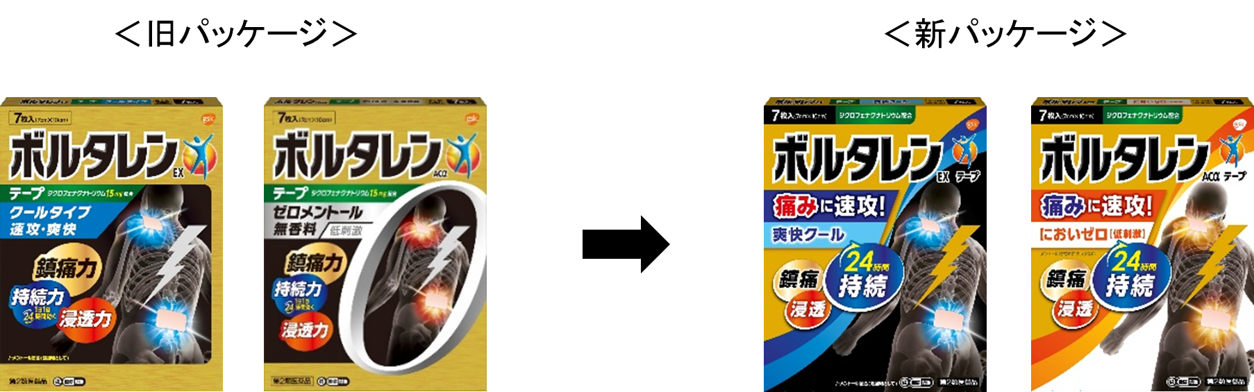 痛みに速攻!「ボルタレン」シリーズ 製品特長がわかりやすいパッケージデザインに一新*1
