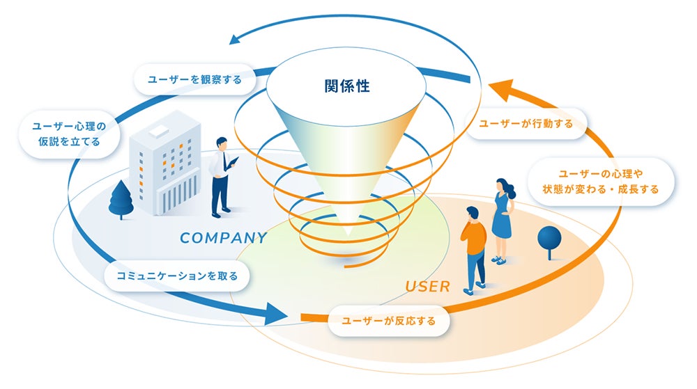 企業は顧客の観察からその気持を想像した上でコミュニケーションを行います。それにより顧客の気持ちが変化すれば、行動も変化します。その変化をまた企業が観察するという循環をくり返すことで、相互の関係性が成長していきます。そのためにはデータとテクノロジーの活用、そして本質的な人間理解を深めていくことが欠かせません。