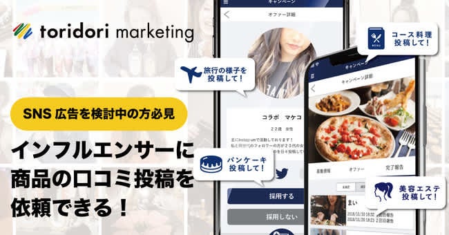 ▼インフルエンサーマーケティングプラットフォーム『toridori marketing』公式サイト: