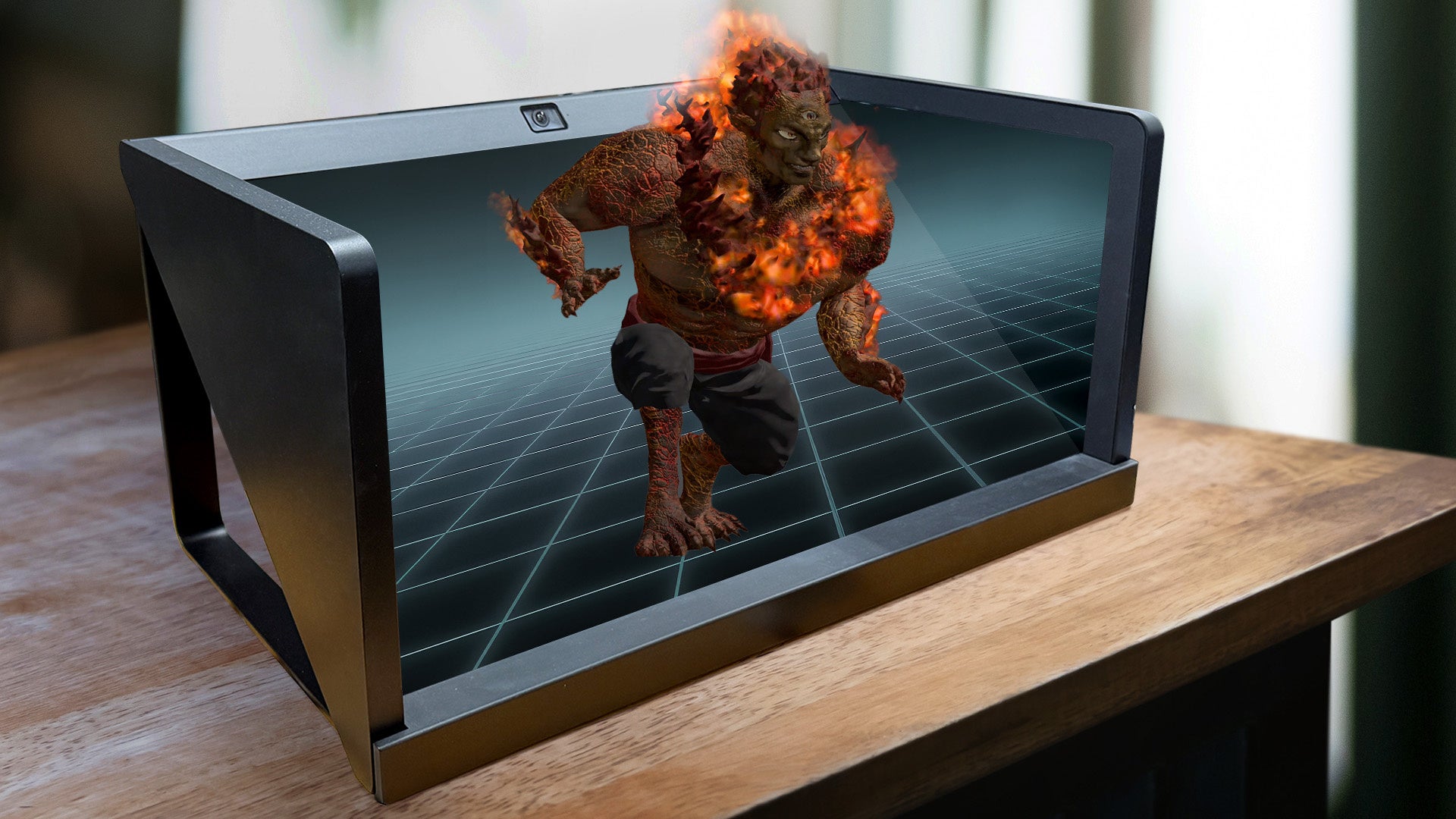 空間再現ディスプレイで開発中のキャラクターを立体展示