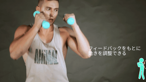 高性能センサーで細かい動きを感知、完成度をフィードバックします。フィードバックをもとに動きを調整すればより効果的なトレーニングが期待できます。