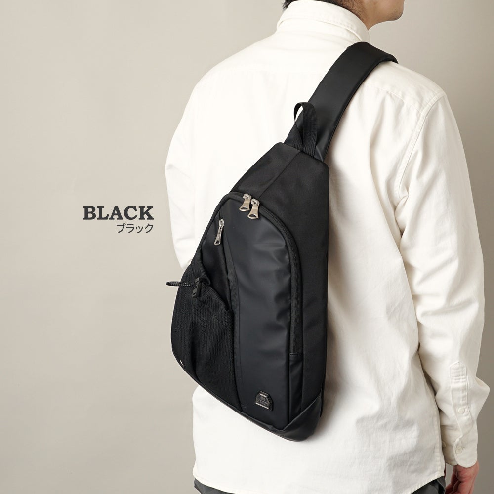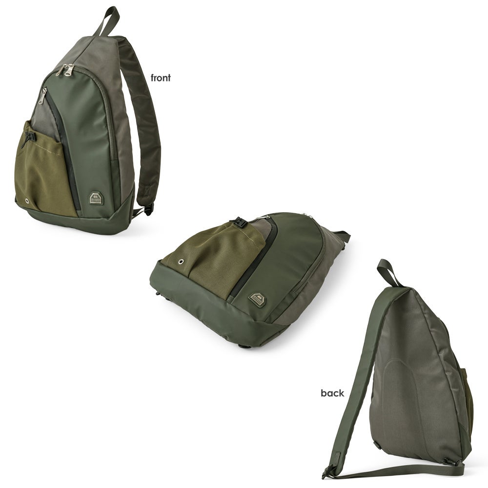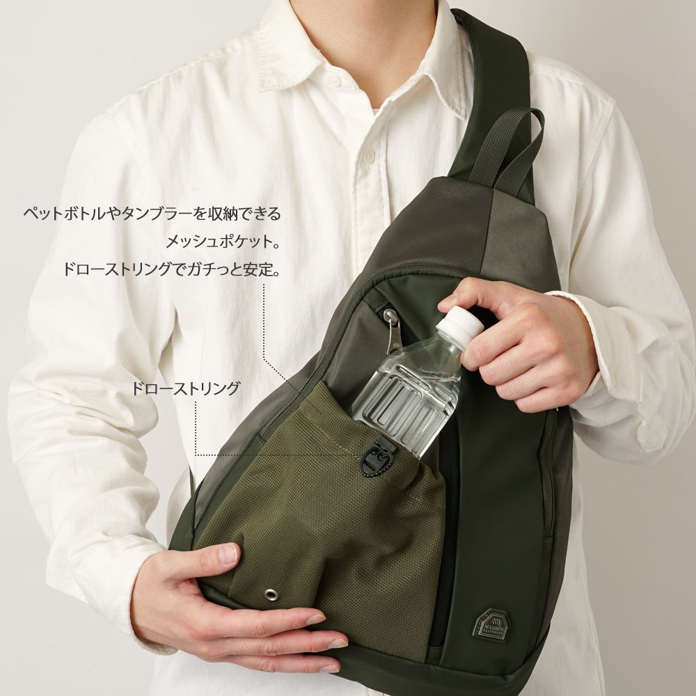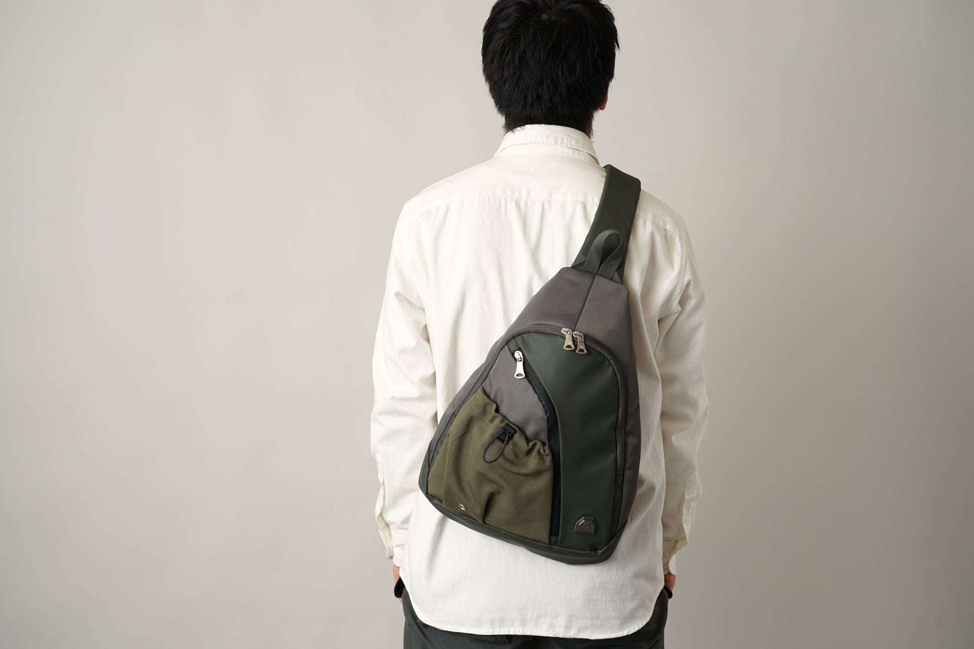 ミリタリーな雰囲気を持ちつつ、ワントーンで表現したショルダーバッグは都会的な印象も与えるスタイリッシュな仕上がり。ON/OFF兼用で使えます。