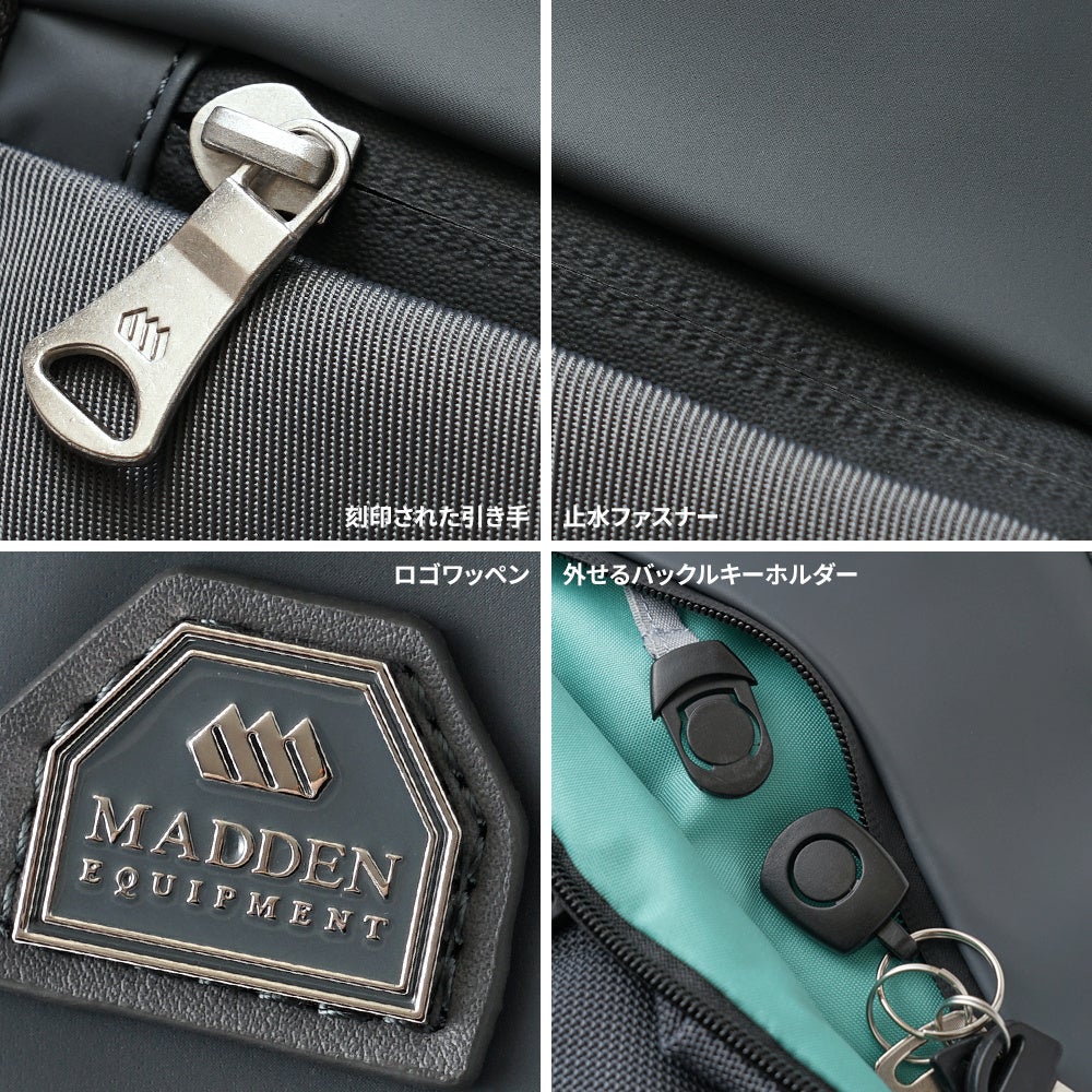 MADDEN EQUIPMENT(メデンイクイップメント)から、夏にぴったりの最新アイテムが新登場!ミリタリーデザインの最新アイテムが新登場!ビジネスにも使えるオーセンティックなスタイルミリタリーな雰囲気を持ちつつワントーンの表現は都会的な印象も与えるデザイン。止水ジッパー付きのポケットの他キーホルダーやドロスト付きのボトルホルダーなど機能性の高さも魅力的。多少の水濡れなど気にならない高い防水性と軽量化を実現したON/OFF兼用で使える仕上がり。