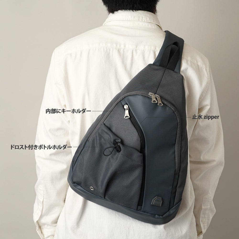 止水ZIPのポケットの他、ドロスト付きのボトル用メッシュポケット や 着脱可能なバックル式キーホルダー を 装備し 機能面も申し分ありません。