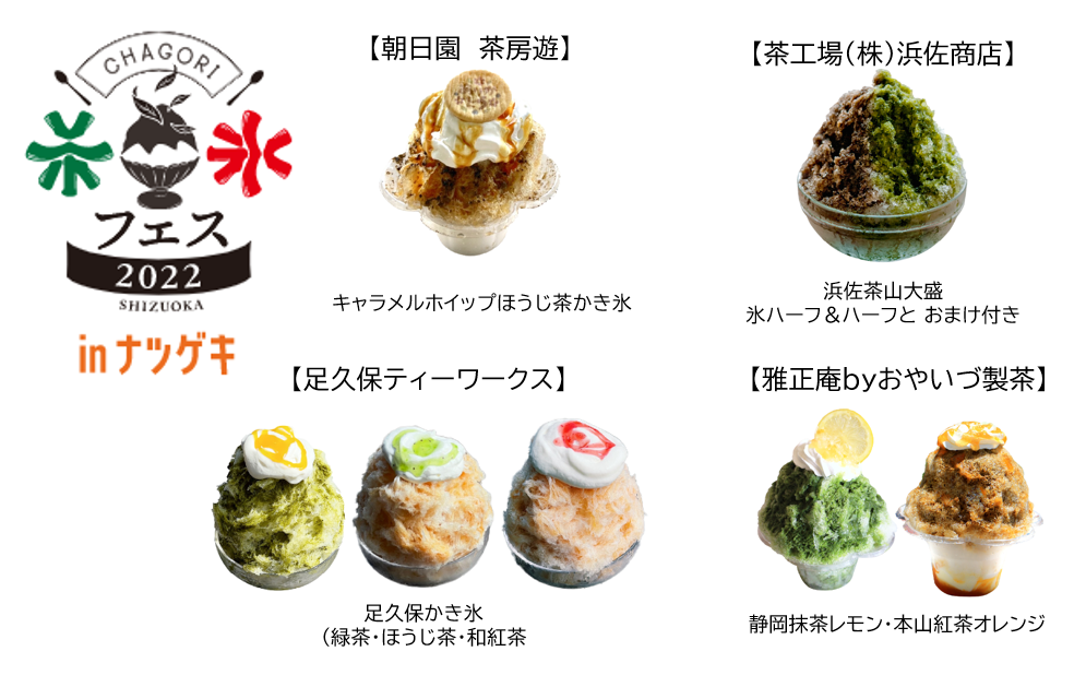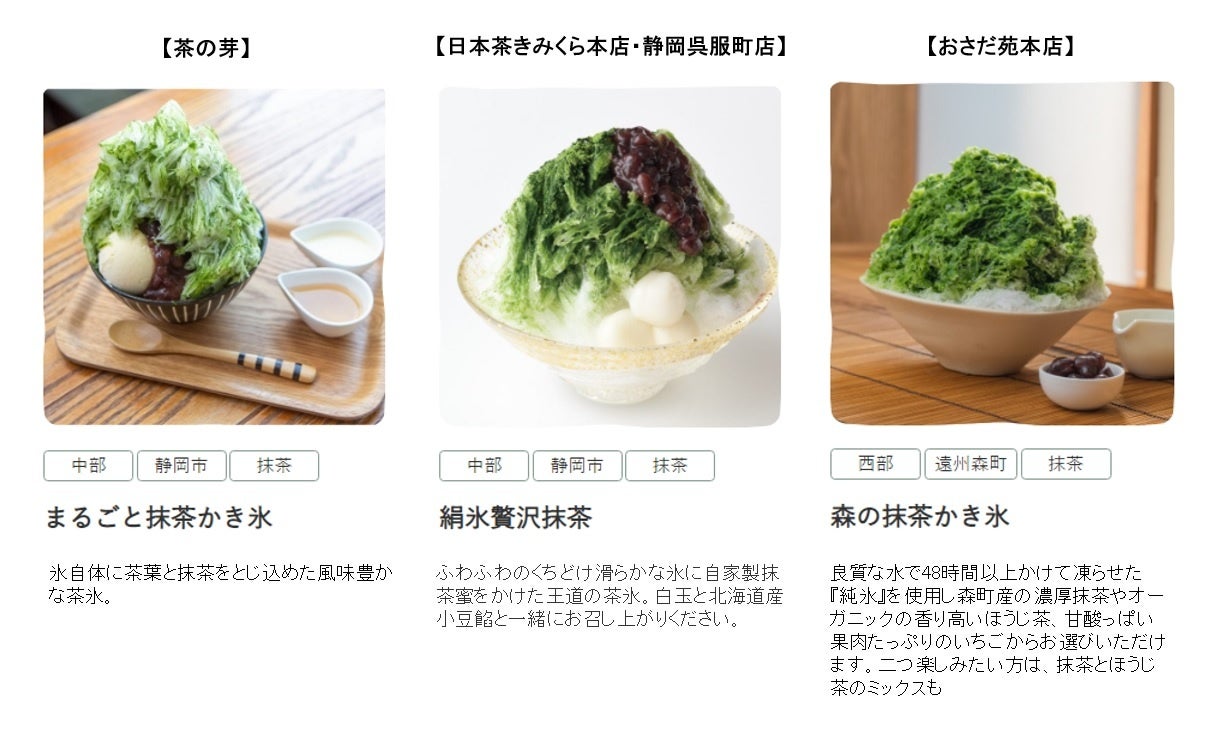 静岡県中部の観光地域づくりに取り組む公益財団法人するが企画観光局(静岡県静岡市)が、全国の約 4割という日本一の生産量※1 を誇る静岡茶の魅力を、「かき氷」というカタチで多くの方に親しんでもらいたい、という想いから 2018 年より始動した「茶氷プロジェクト」が、2022 年も 7 月 1 日より実施中。連日の猛暑の中、夏休みシーズンに突入し、地元の方を中心に「今年も待っていました!」という声を多数いただき、好評を博しています。