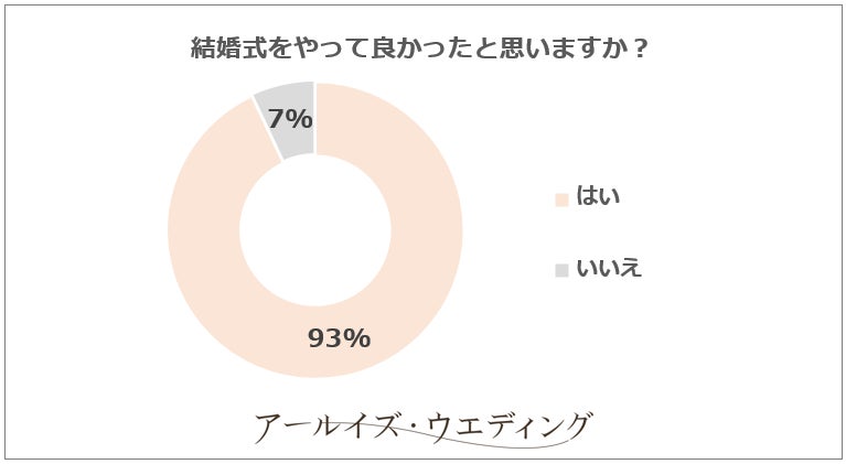 結婚式を実施した方のうち、93%の方がやって良かったと回答しました。