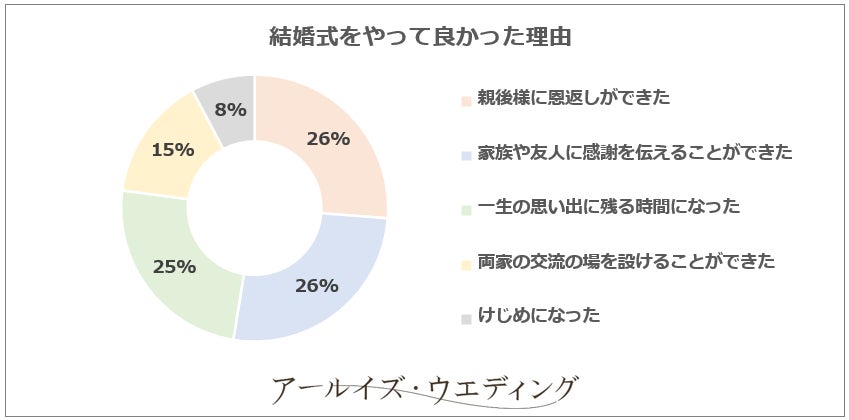 ✓結婚式をやって良かったと回答した方が93%。理由は「家族や友人に感謝を伝えることができた」から。