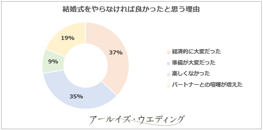 一方、結婚式をやらなければ良かったと回答した方の理由は「準備が大変だった」「経済的に大変だった」が多い結果となりました。
