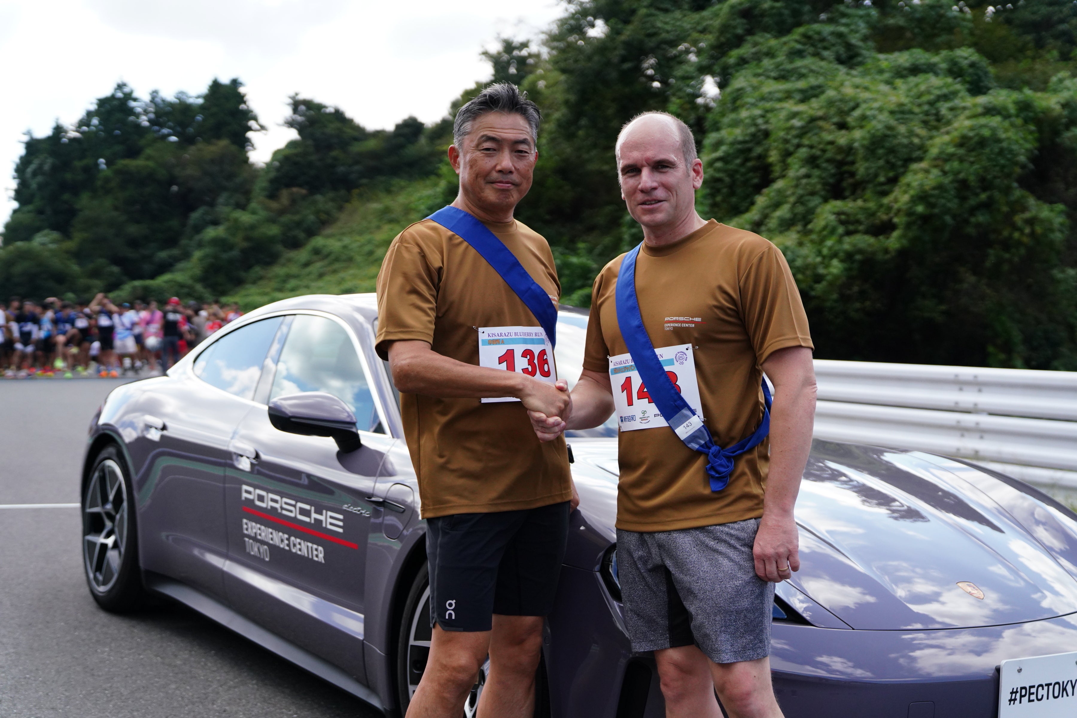 さらに、スポーツカーブランドとして、ポルシェジャパンはスポーツ振興に対する取り組みも支援しています。PEC東京を会場として提供し、2.1kmのハンドリングコースを唯一走ることができる地域密着型のチームランニングイベント「第9回 木更津ブルーベリーRUN」は今年10月13日(日)に開催され、1,208人が参加しました。木更津市の名産であるブルーベリーが会場でふるまわれ、10人までのチームがタスキをつなぎ3時間の耐久リレーマラソンに挑みました。ここにもポルシェジャパンチームとして、社長のフォン・ヴィッツェンドルフ自ら参加し、渡辺芳邦市長らと汗を流しました。今年は、ファミリーウォークも開催し、幅広いスポーツ愛好者がPEC東京に集いました。