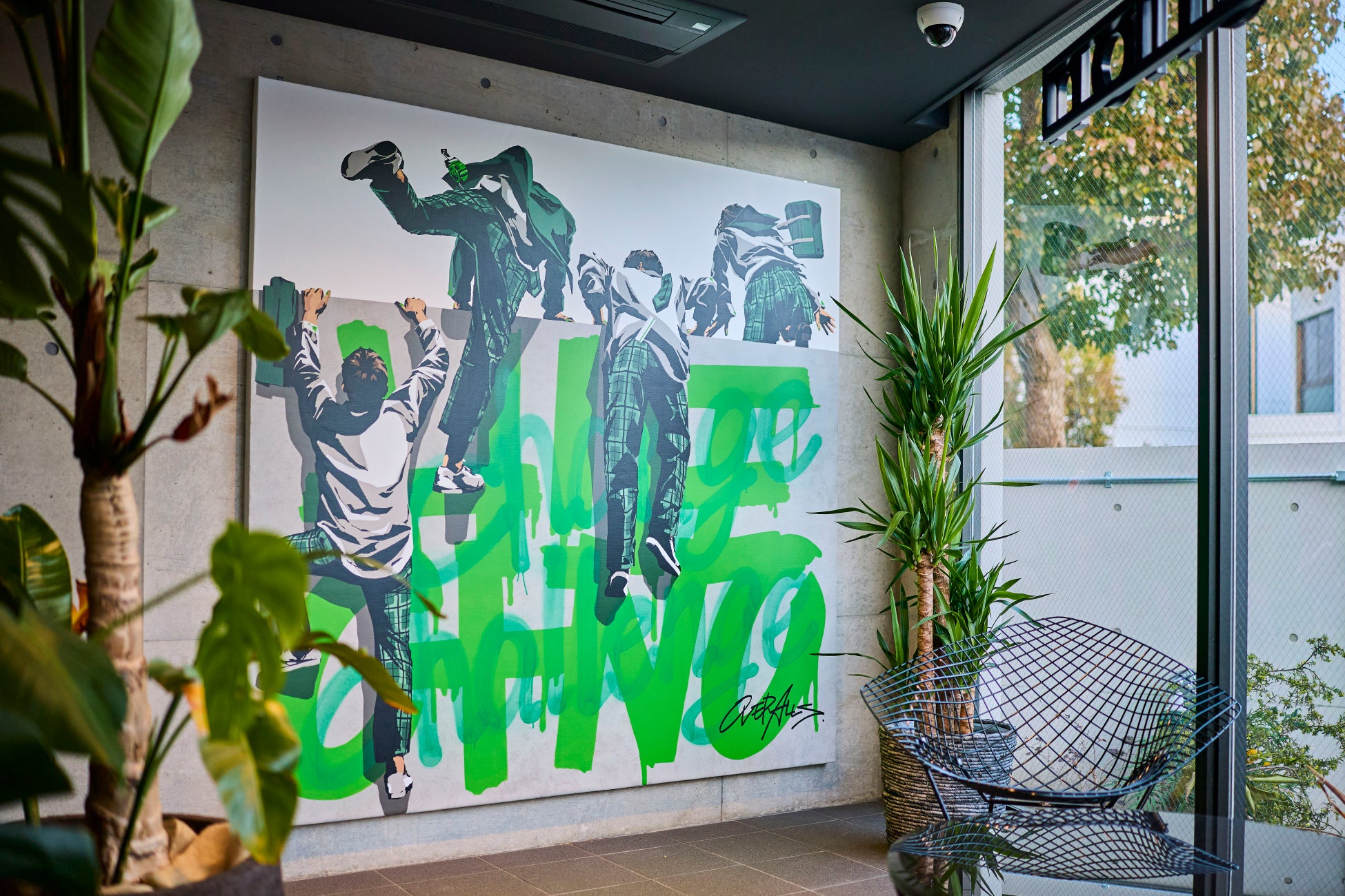 主に代表の赤澤岳人(写真左)が企画・プロデュースを担当。メインアーティストである画家・山本勇気(写真右)は「ART BATTLE JAPAN 2018」チャンピオン。「ミューラル(壁画)の力で、人々を表現者に変える」ことを目指して、全国各地で様々な作品を生み出し続けている。制作にあたっては、依頼者に驚かれるほど歴史や背景を調査し、想いを引き出すインタビューを実施。企業が社会、さらに組織で働く個人が伝えたい想い、歩んできた歴史を浮き彫りにして、ミューラルとして表現している。代表作はエスコンフィールドHOKKAIDOでダルビッシュ有投手と大谷翔平選手を描いた壁画、東日本大震災の被害から再生への道を歩み始めた福島・双葉町の住民の方々の顔を描いた壁画群「FUTABA Art District」など。「情熱大陸」や「news zero」、「サンデージャポン」「WBS(ワールドビジネスサテライト)」など、メディア出演も多数。
