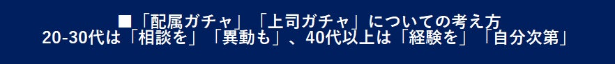 配属ガチャ同様に、20-30代は転職や異動を勧め、40代以上は状況を受け入れることを勧めていました。