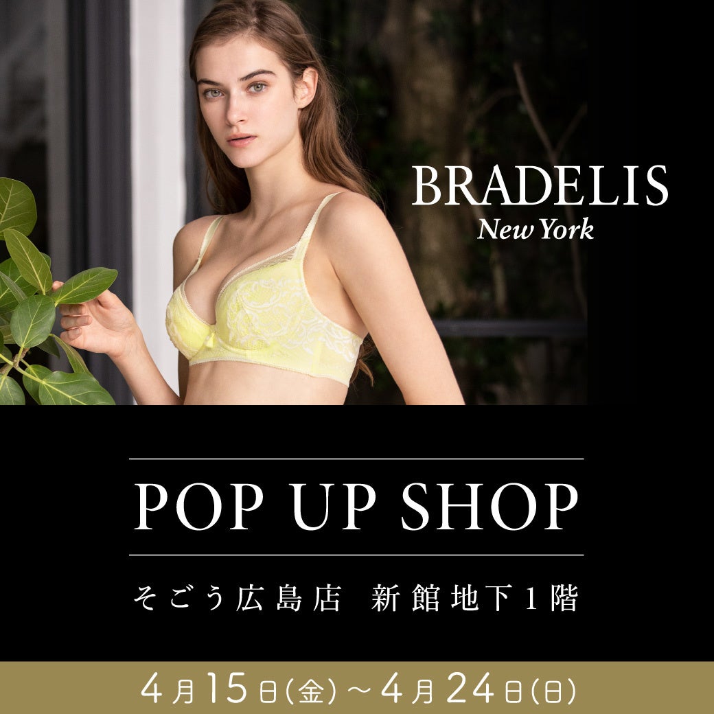 補整下着BRADELIS New York(ブラデリスニューヨーク)を展開するゴールドフラッグ株式会社(本社:大阪府大阪市中央区、代表取締役:平久保 晃世)は、そごう広島店 新館地下1階に、2022年4月15日(金)~4月24日(日)の10日間「BRADELIS New York(ブラデリスニューヨーク)」のポップアップショップを展開いたします。
