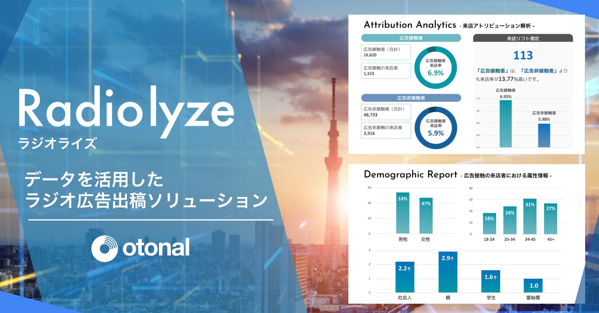 株式会社オトナル(本社:東京都中央区/代表取締役 八木太亮、以下オトナル)は、データを活用したラジオ広告出稿ソリューション『Radiolyze』の提供を開始しました。