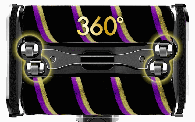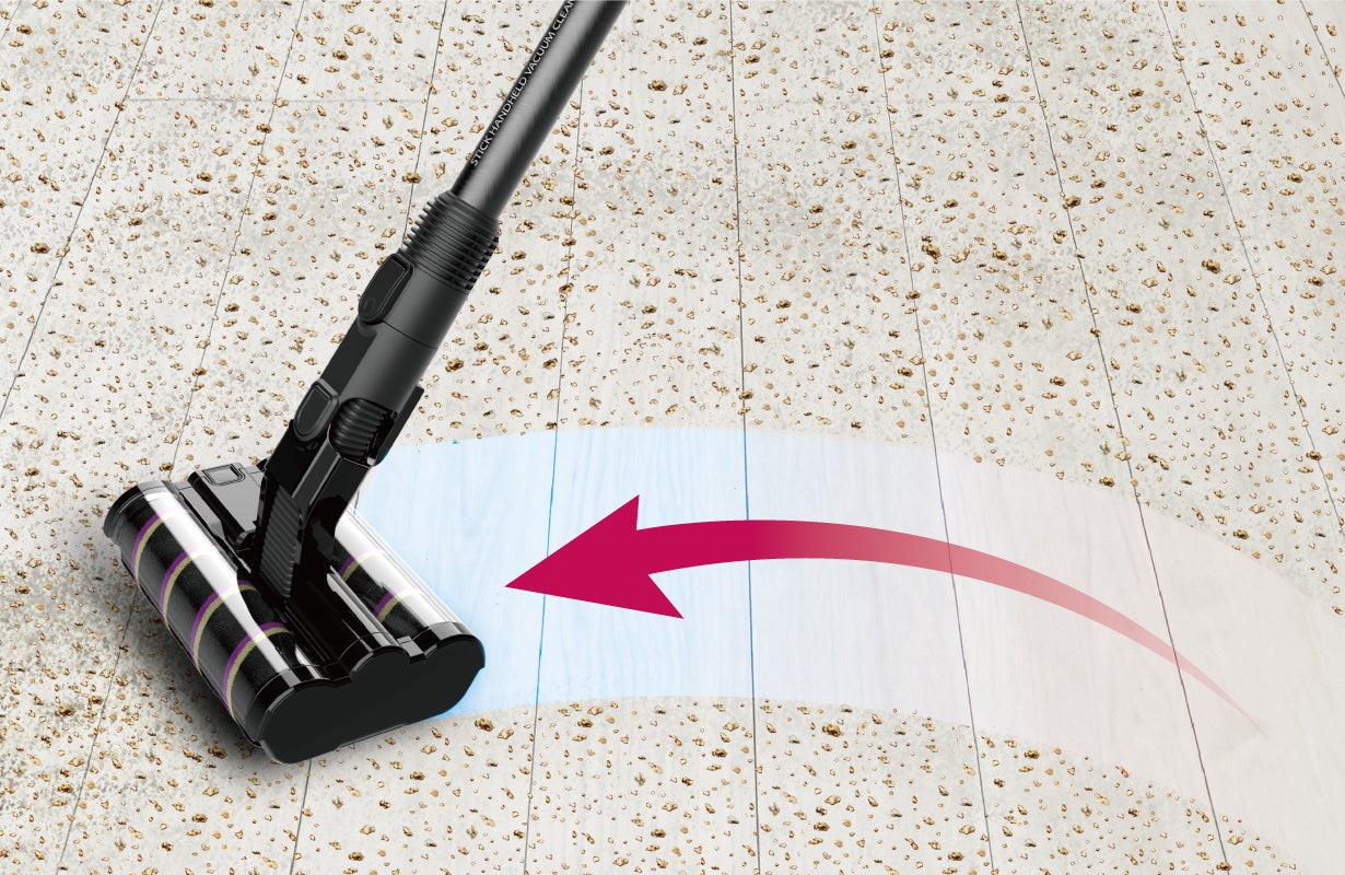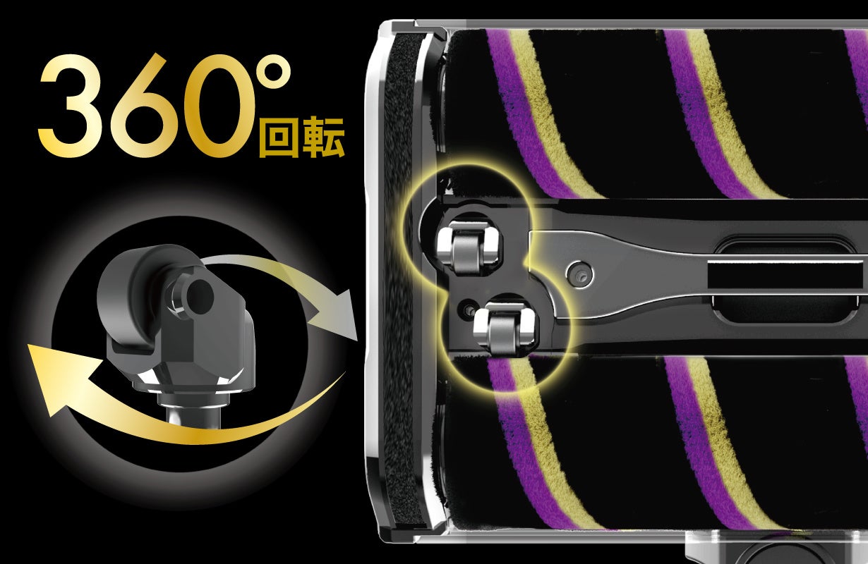 2.自由自在に動く操作性に優れたヘッド!360°回転する4つのローラーでどこでも手軽に掃除ができる。