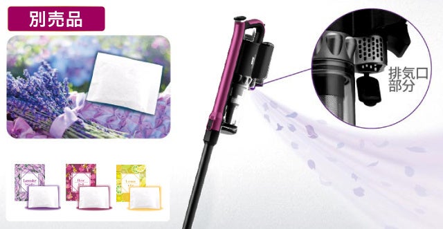 お部屋の香りを演出するもので、どの掃除機でもダストカップに入れることで使用可能ではありますが、本掃除機にはクリーナーフレグランスを取り付けられる専用部分があるので排気の力で効率良く香り演出することができます。