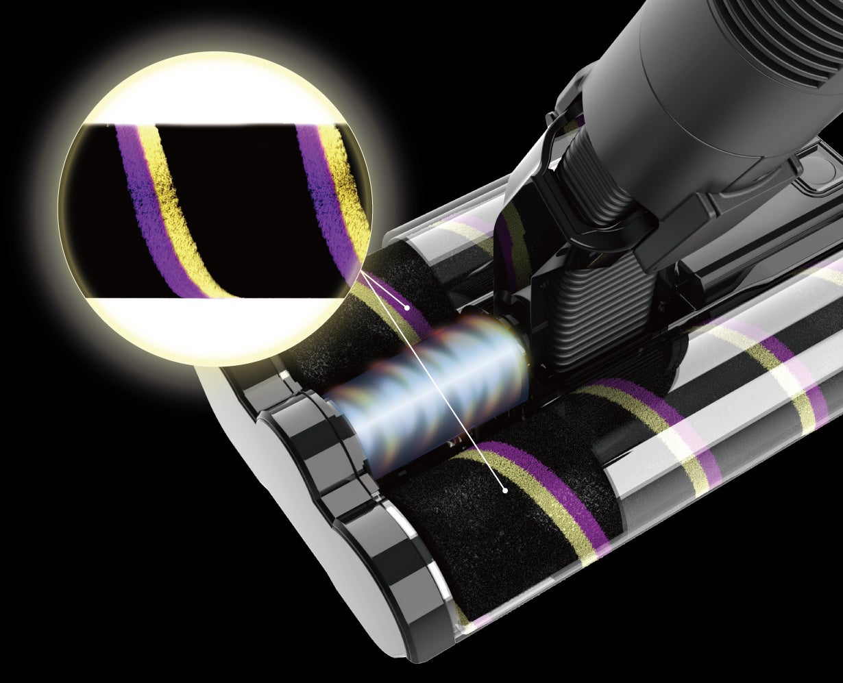 2つのブラシには細かな毛が無数にある高性能ブラシを採用している為、ゴミを吸い取りながら床の拭き掃除ができます。