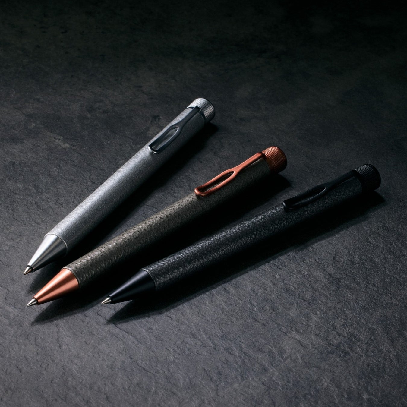 「SAKURA craft_lab 010」は、“不均衡の美学。”をコンセプトとした、ハンマートーン塗装による凸凹感のある表情豊かなボディが特長のボールペンです。ハンマートーン塗装の不均一で無骨な質感のデザインを引きたてる、ハンマートーンシルバー・グレー・チャコールの3種類のボディカラーをラインアップいたしました。頭冠には、丁寧に削り出されたサクラのマークとその周囲に広がる波紋の模様、およびローレット加工を施し、細部までこだわり抜いた1本です。