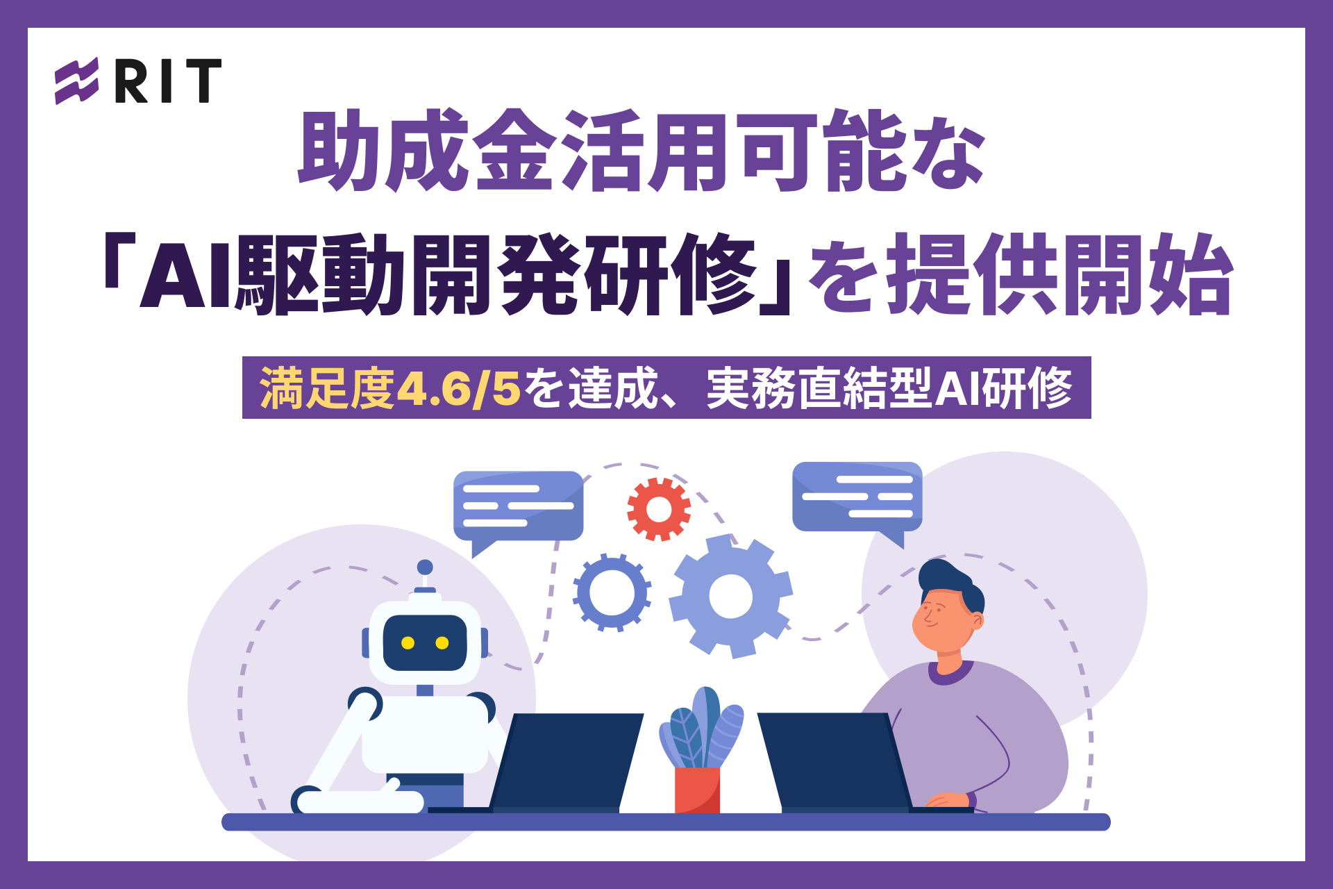 太陽ホールディングス株式会社(本社:東京都豊島区、代表取締役社長:齋藤 斉、証券コード:4626)のグループ会社で、ICT事業を担う株式会社RIT(本社:東京都豊島区、代表取締役社長:安武 遼太、以下「RIT」)は、生成AIを開発パートナーとして活用する「AI駆動開発(AI-Driven Development)」を1日で実践的に学ぶ研修サービスの提供を開始しました。本研修は、設計から実装・改善までを一気通貫で体験できる少人数制のオンサイト型プログラムで、助成金の活用により最大75%の費用補助が可能です。