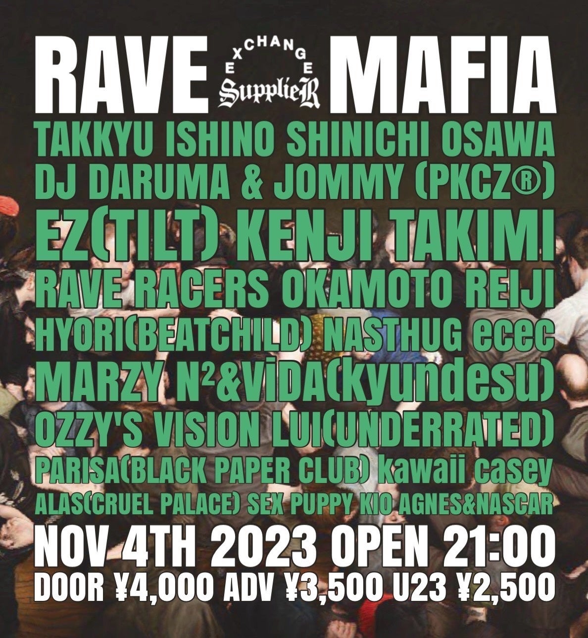 コラボレーションを記念して 新イベントRAVE MAFIAと共に2023年11月4日(土)、石野卓球や大沢伸一、DJ DARUMA & JOMMY (PKCZ ®)などをDJに迎え、新宿・歌舞伎町のZERO TOKYOでローンチパーティーを開催。