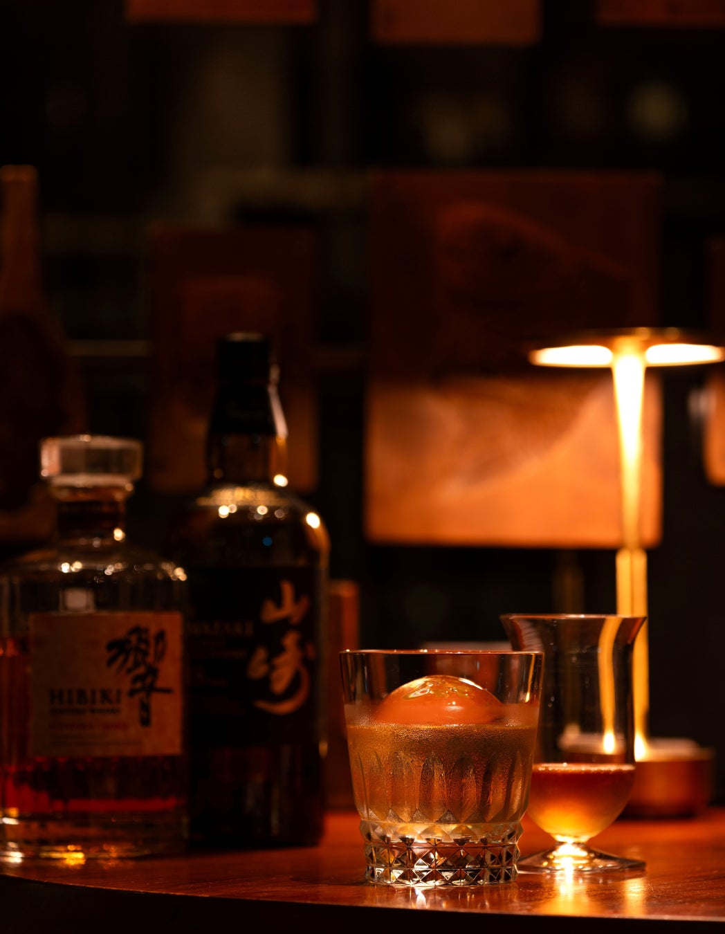 古民家の梁や木組み、干菓子の木型などアンティークを使用したパーティション、古本の壁など斬新な装飾が隠れ家的な雰囲気を漂わせる、居心地の良い空間です。種類豊富なジャパニーズウイスキーや各種カクテルをはじめ、京都の地酒や地ビール、焼酎、ワインなど、世界の銘酒をご用意しています。バーテンダーが丁寧に一杯ずつお作りする特別な一杯を、優雅な雰囲気の中でゆったりくつろぎながら、ご堪能ください。