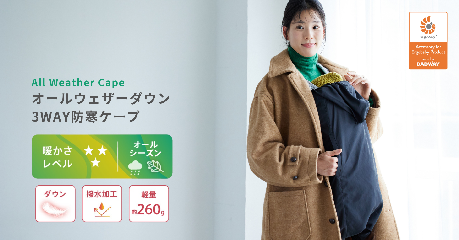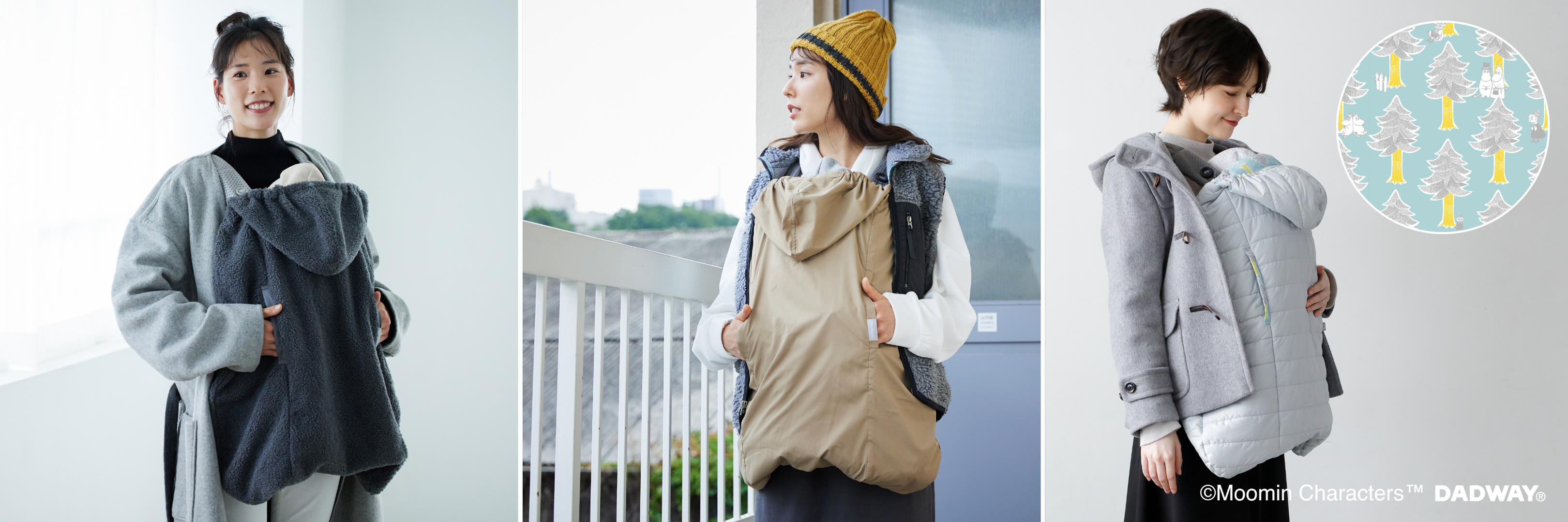 スタイリングやライフスタイルに合わせてとっておきの1枚をお選びいただけるよう、ダッドウェイでは、機能やデザインの異なる防寒ケープを複数ご用意しております。なかでも、オリジナルブランド「BabyHopper(ベビーホッパー)」は、例年の人気商品をリニューアル。お客さまの声を反映させ、暖かさはそのままに、より軽量で簡単に装着可能なモデルを発売しました。