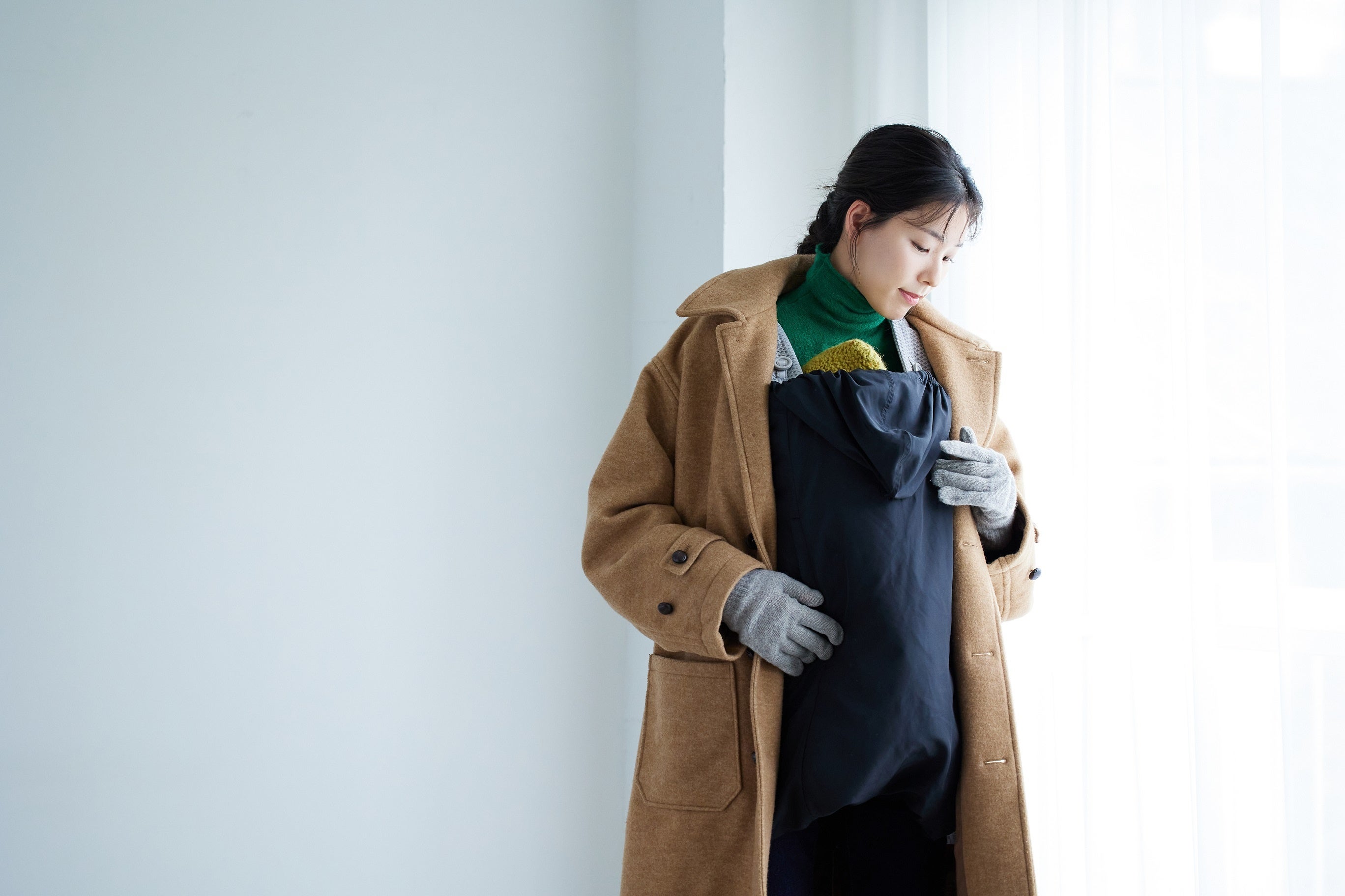 エルゴベビーにぴったりフィットし、赤ちゃんの首元までしっかり暖かい。すっきりとしたシルエットも嬉しいポイントです。