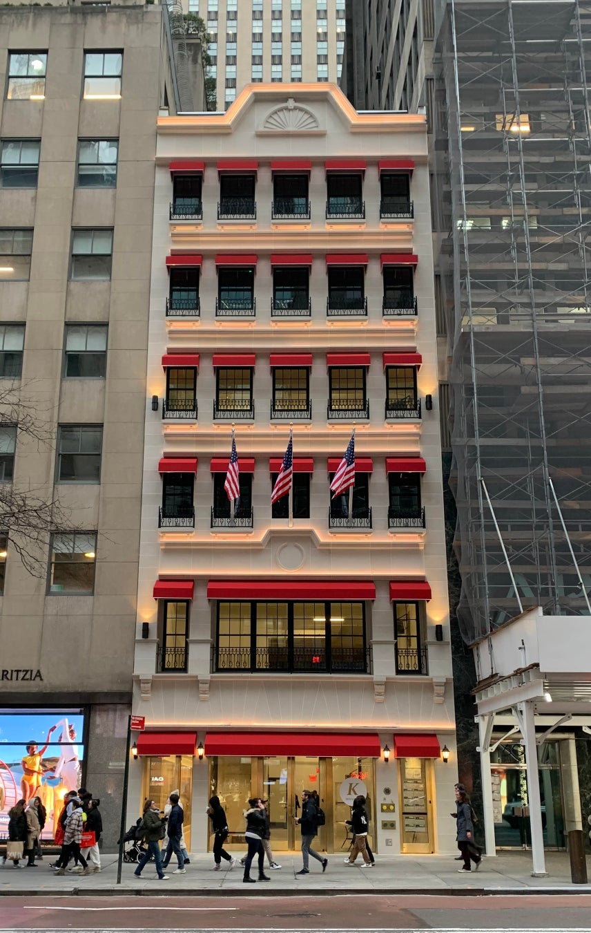 1993年にシンガポールへの出店から始まった弊社の海外出店は、現在8か国地域35店舗を展開しています。アメリカへは 1994 年に「U.S.A. K. MINAMOTO CO., INC.」を設立。1997 年には旗艦店「ニューヨーク 5th アベニュー店(608 Fifth Avenue New York NY10020)」を出店。抜群のロケーションで多くのお客様にご来店いただいていましたが、地価高騰による賃料の上昇によって 2013 年に閉店、「ニューヨーク マディソン店(509 Madison Avenue New York NY10022)」に移転オープンしました。そしてこの度2023年2月に竣工したニューヨーク5番街にある自社ビルに宗家 源 吉兆庵 5th Avenue New York店とK.MINAMOTO 5th Avenue New York店を同時オープンいたします。