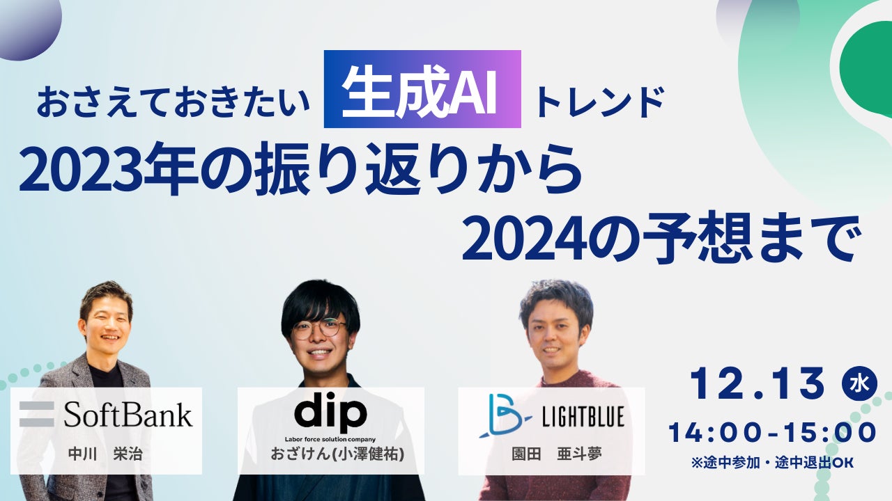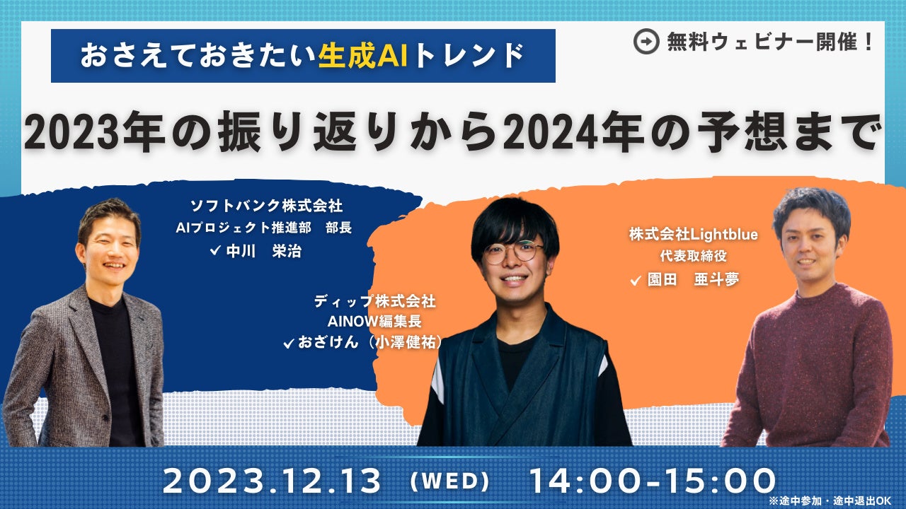【12月13日(水)無料セミナー】おさえておきたい生成AIトレンド、2023年の振り返りから2024年の予想まで