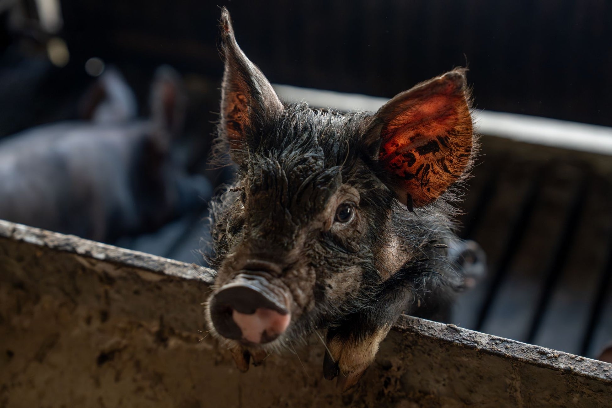 ファームには常時約400頭の黒豚が暮らしており、出産から離乳まで、すべてを家族が手掛けます。子豚は通常8〜10頭生まれ、生まれた順番でお乳を飲む位置が決まるため、最後に生まれた子は発育が遅くなることもあります。