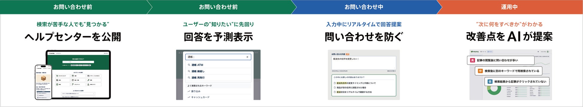 セルフサポートシステム「ヘルプドッグ」は、このような課題に対し、技術と運用の両面からアプローチすることで、顧客の自己解決を促進する環境の整備を支援します。検索体験や情報導線の最適化、コンテンツ改善の自動化といった機能群を通じて、企業はサポート業務の効率化を実現しながら、顧客には「待たずに解決できる」快適なサポート体験を提供することが可能となります。