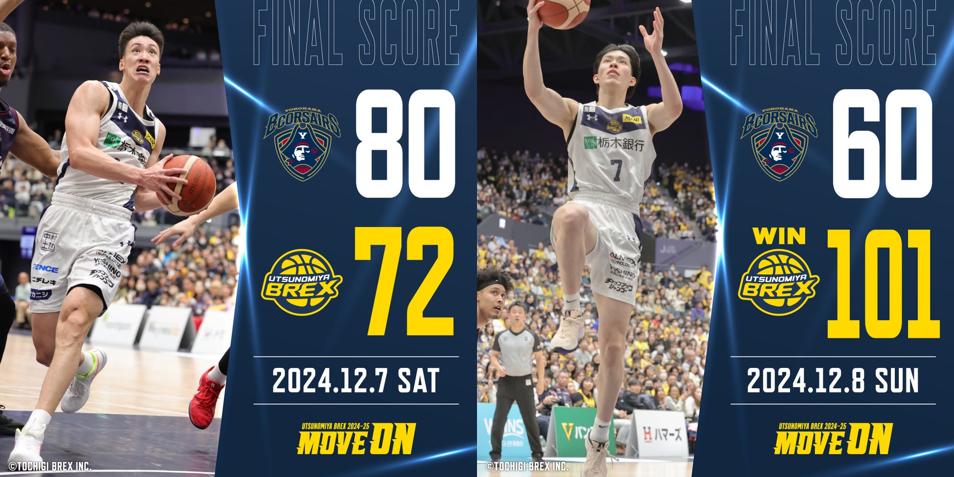 宇都宮ブレックスは、2024年12月7日(土)と12月8日(日)に横浜BUNTAIで横浜ビー・コルセアーズと対戦しました。