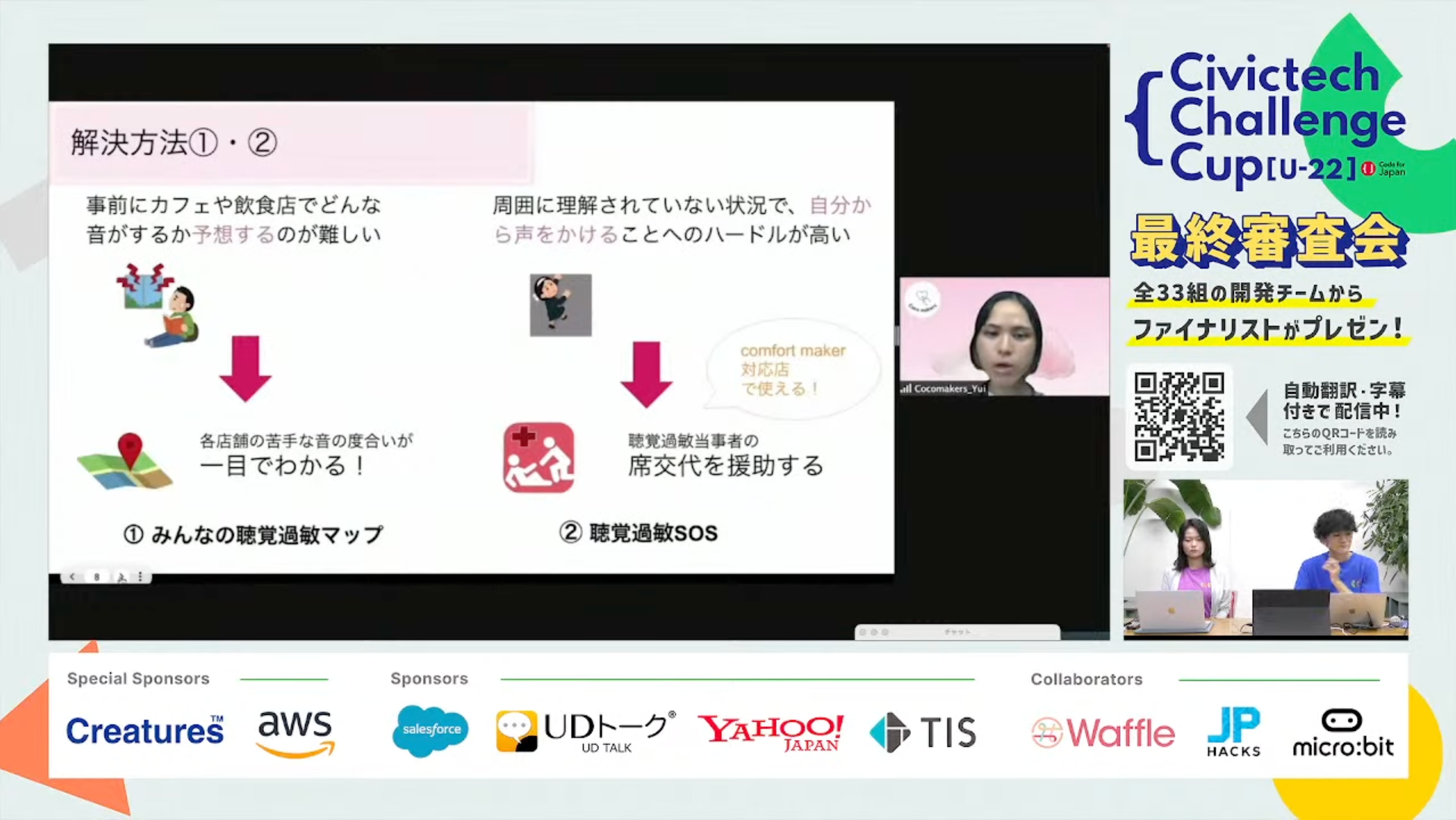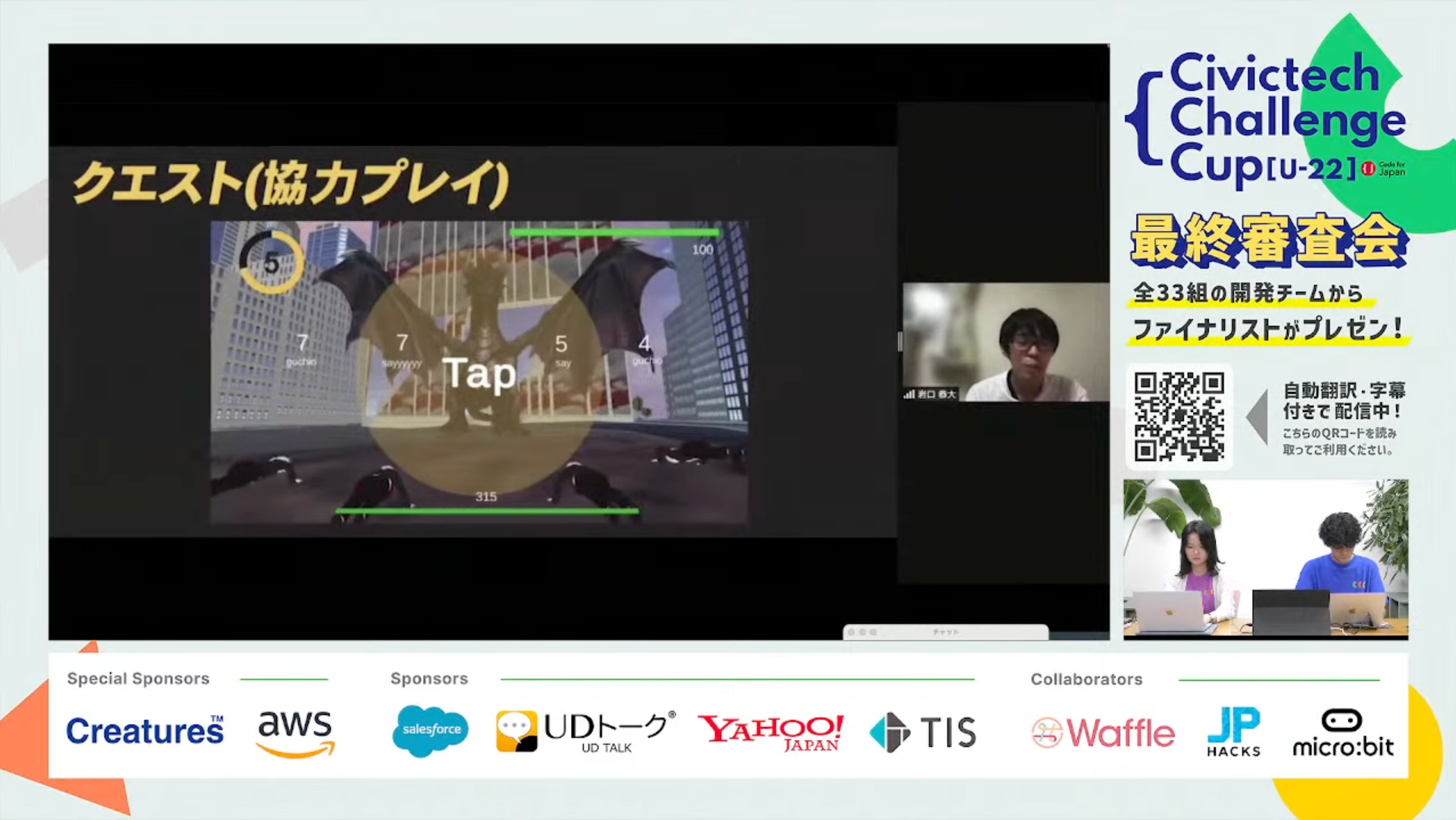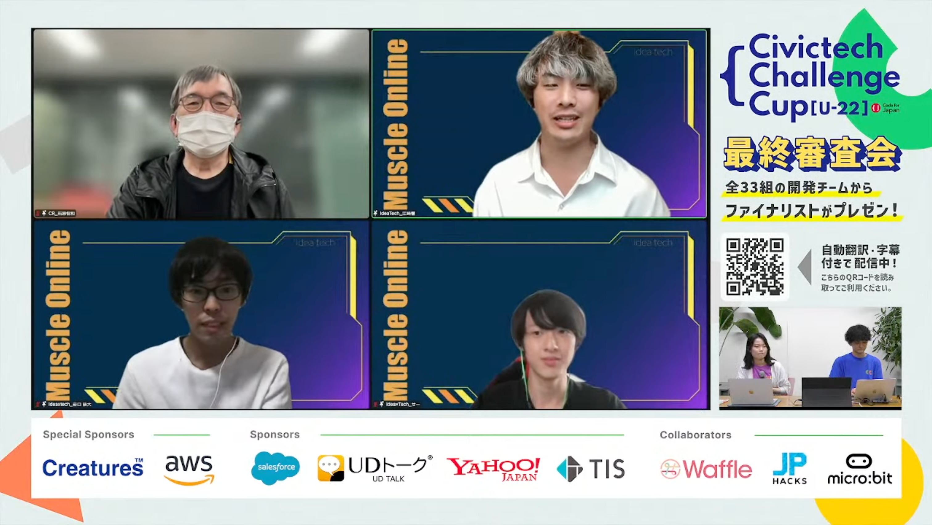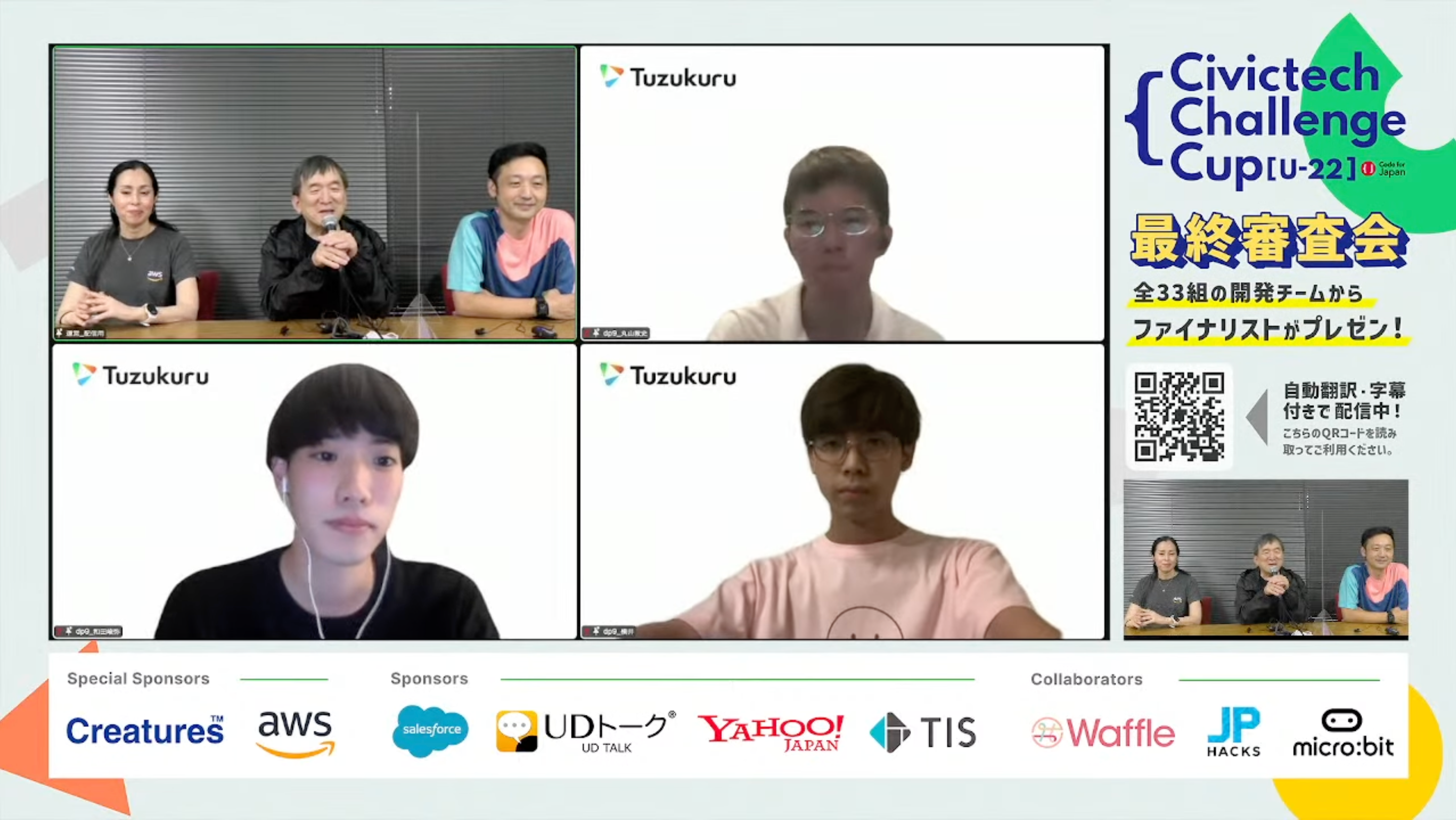 一般社団法人コード・フォー・ジャパン(Code for Japan、代表:関治之)は、22歳以下を対象とした学生向け開発コンテスト「Civictech Challenge Cup U-22」(以下、CCC U-22)を開催しました。勉強会、ハンズオン、メンタリングを実施しており、9月17日(土)の最終審査会では、一次審査を通過した8つの学生開発チームから制作した作品が発表されました。