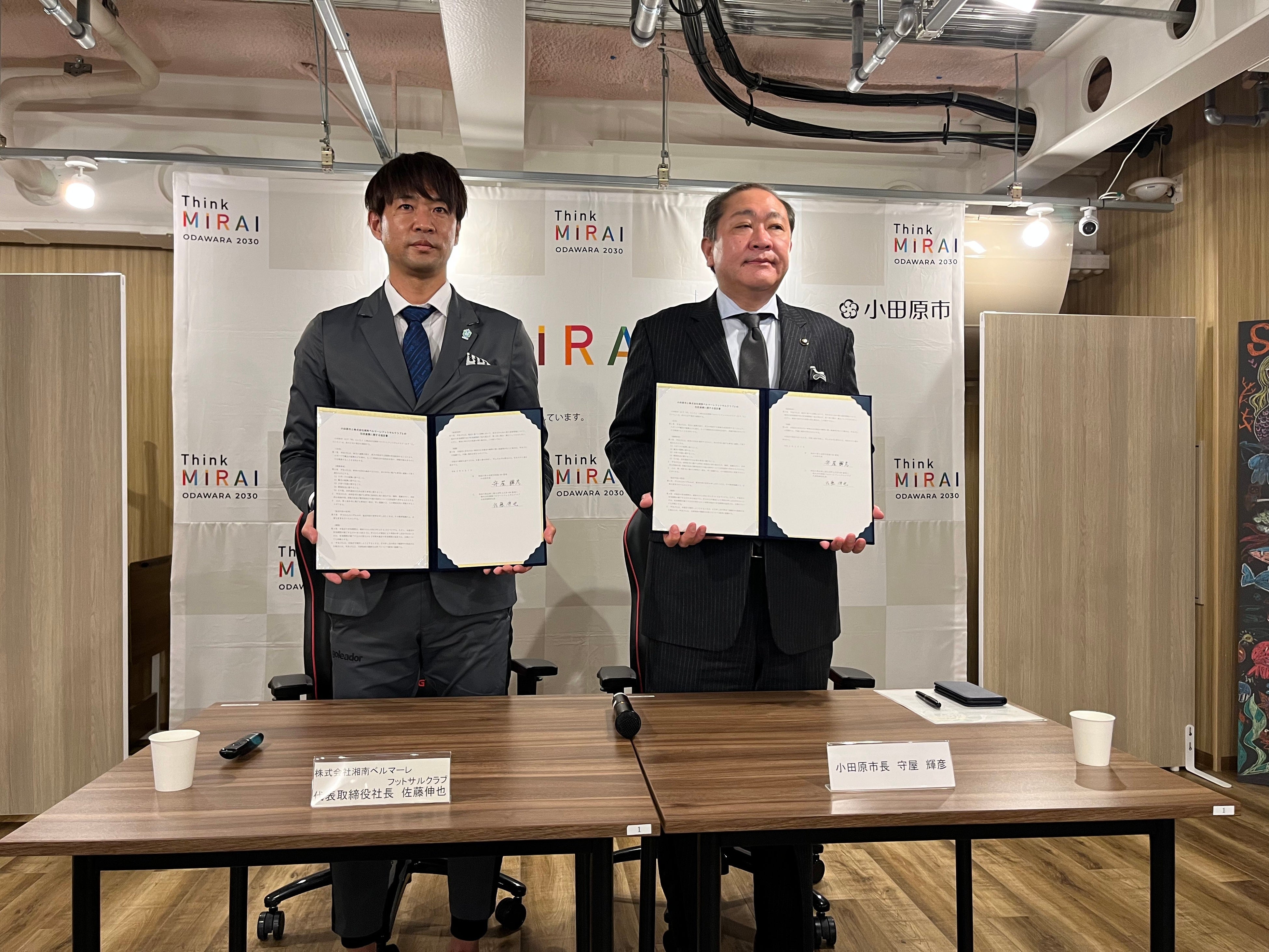 この度、湘南ベルマーレフットサルクラブは、小田原市との包括連携に係る協定を締結することに合意し、締結式を行いました。