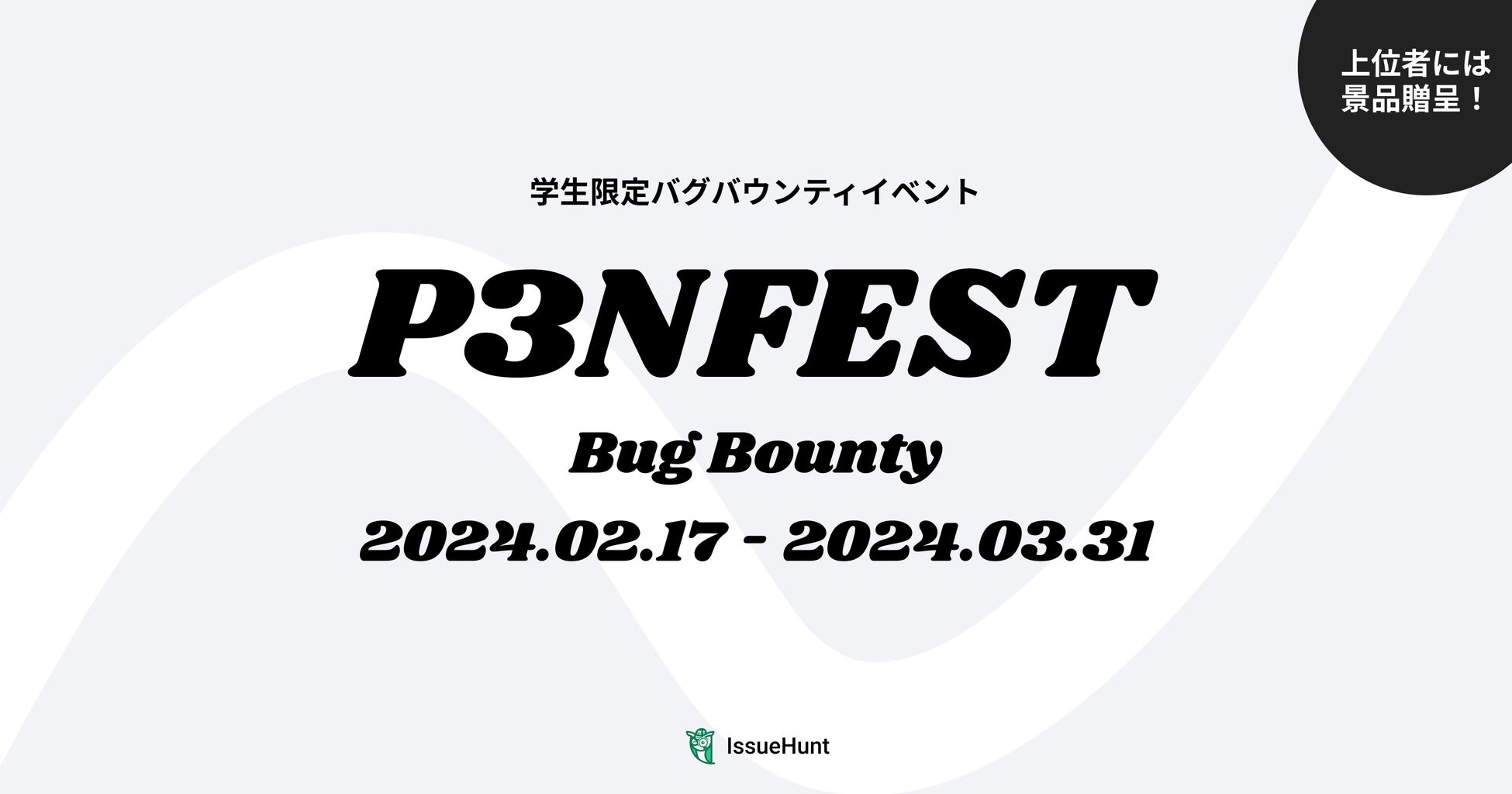 ・イベントページ:https://issuehunt.jp/events/2024/p3nfestbugbounty