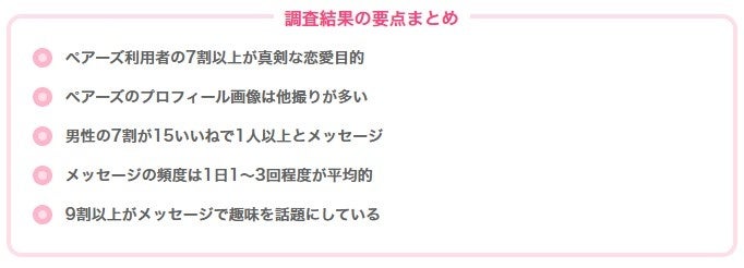 ペアーズ利用者のいいね返信率や、メッセージ頻度、人気の話題まで気になるデータを徹底調査