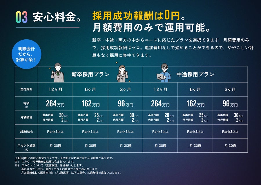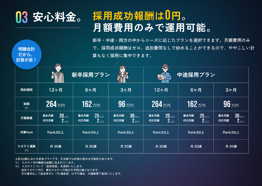 ※上記料金プラン内にスカウト代行機能も含まれております。