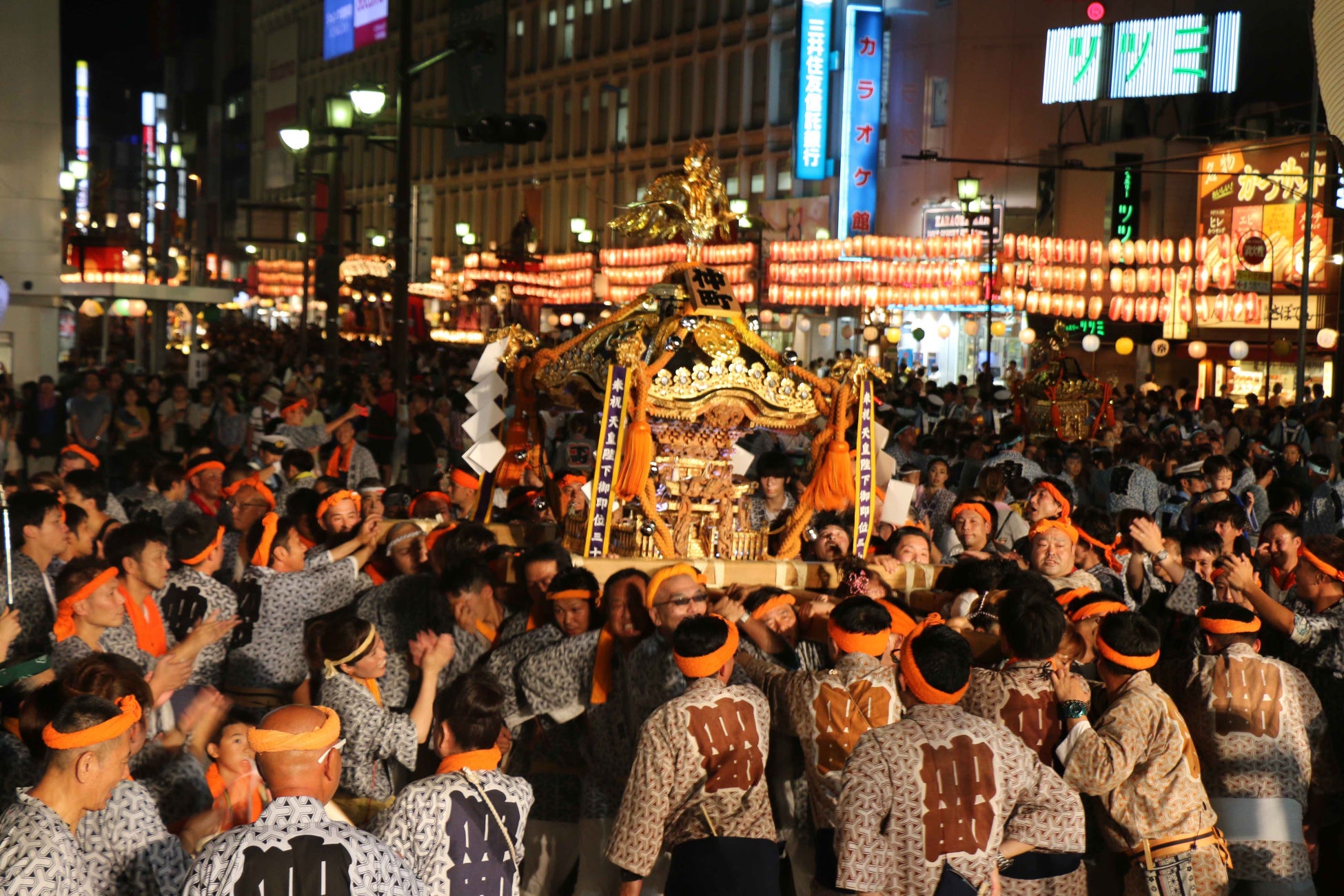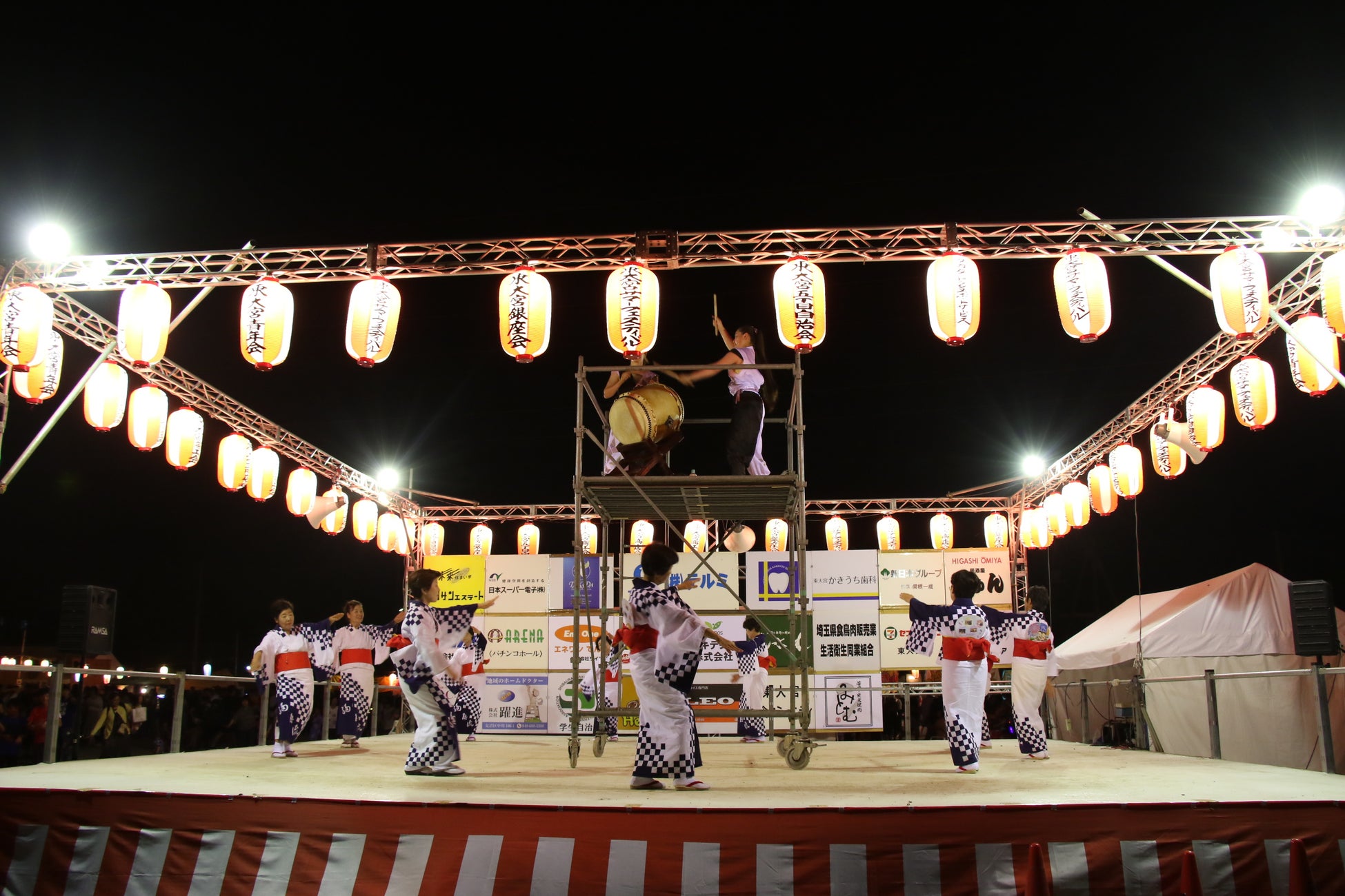 1日は大宮駅東口周辺の地元町会の御輿と山車が駅前周辺を練り歩き、メインとなる2日は御輿や山車の他、民踊輪おどり、阿波踊り、和太鼓演奏など、和の催しが存分に詰まったまつりです。19時30分頃の御輿や山車の駅前集結は圧巻です。