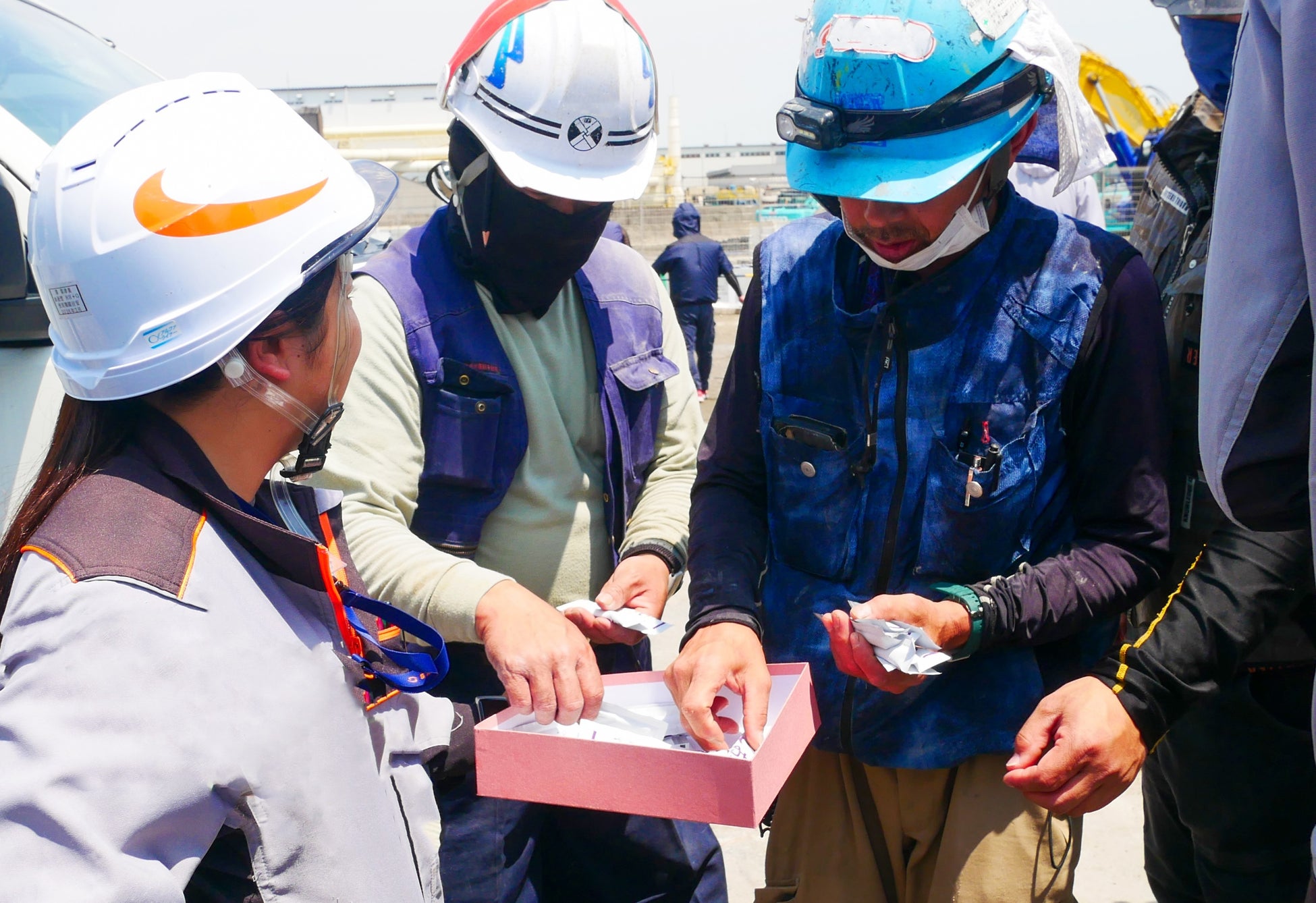 ①自社開発「ゼネコンがつくったしおゼリー」を作業員に無償配布
