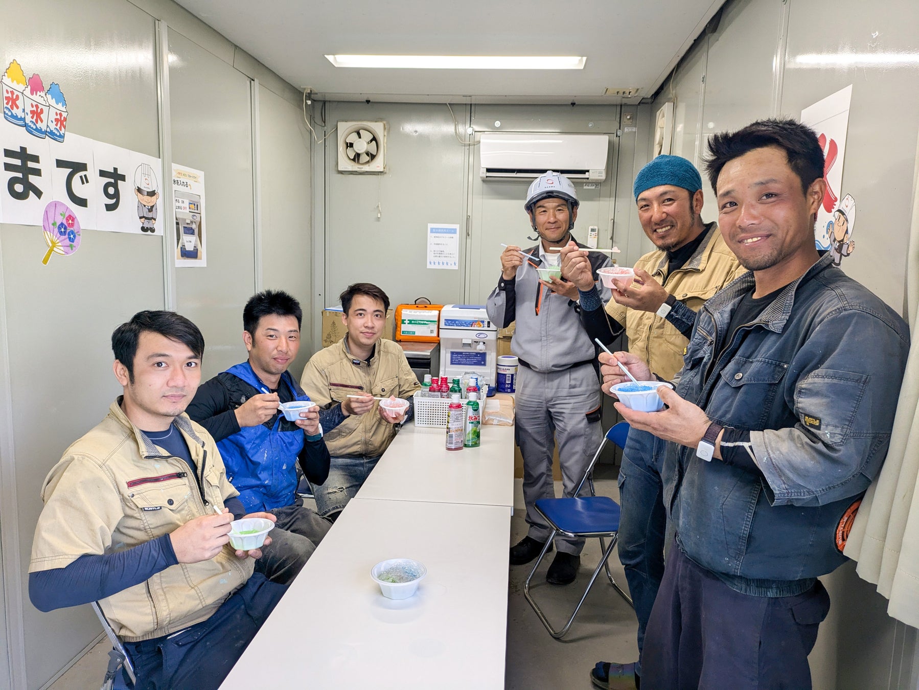 三和建設のかき氷ステーションは作業員たちの負担を軽減したい!と考える所長の発案から始まりました。約10年前、出勤前にコンビニエンスストアで氷を買う職人たちの様子に当時の現場所長が気づきました。「製氷機を現場に設置したらみんなの負担が軽くなり、喜ばれるのは?」と考え、製氷機の導入を決定。※やがて「製氷機があるならかき氷もできるのでは?」と更に現場に目を向けたことでかき氷機も設置。作業員たちにも好評で、かき氷ステーションは三和建設の夏の風物詩となりました。