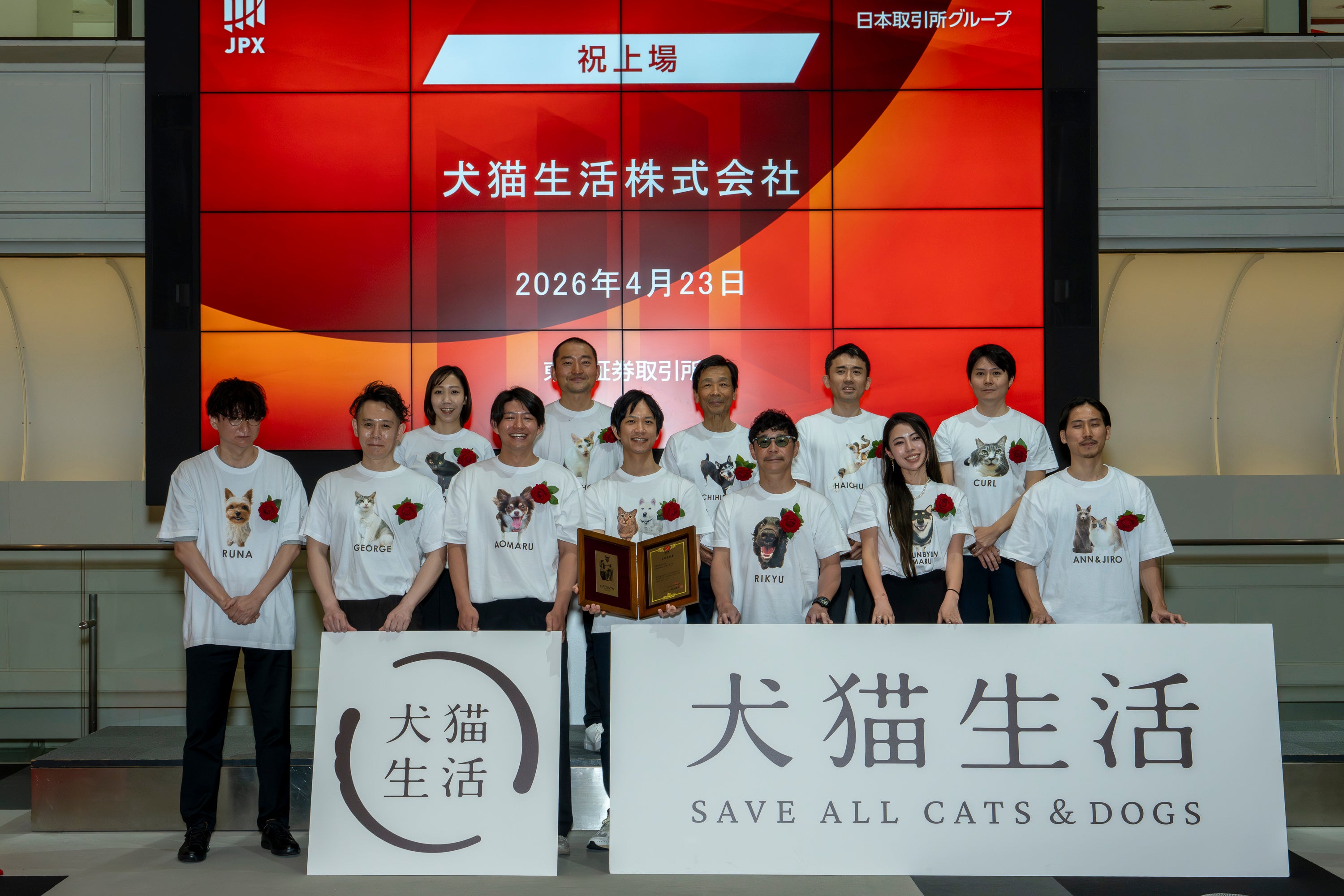 犬猫生活株式会社(本社:東京都新宿区、代表取締役社長:佐藤淳、以下「犬猫生活」)は、本日2026年4月23日、東京証券取引所グロース市場へ新規上場いたしました。